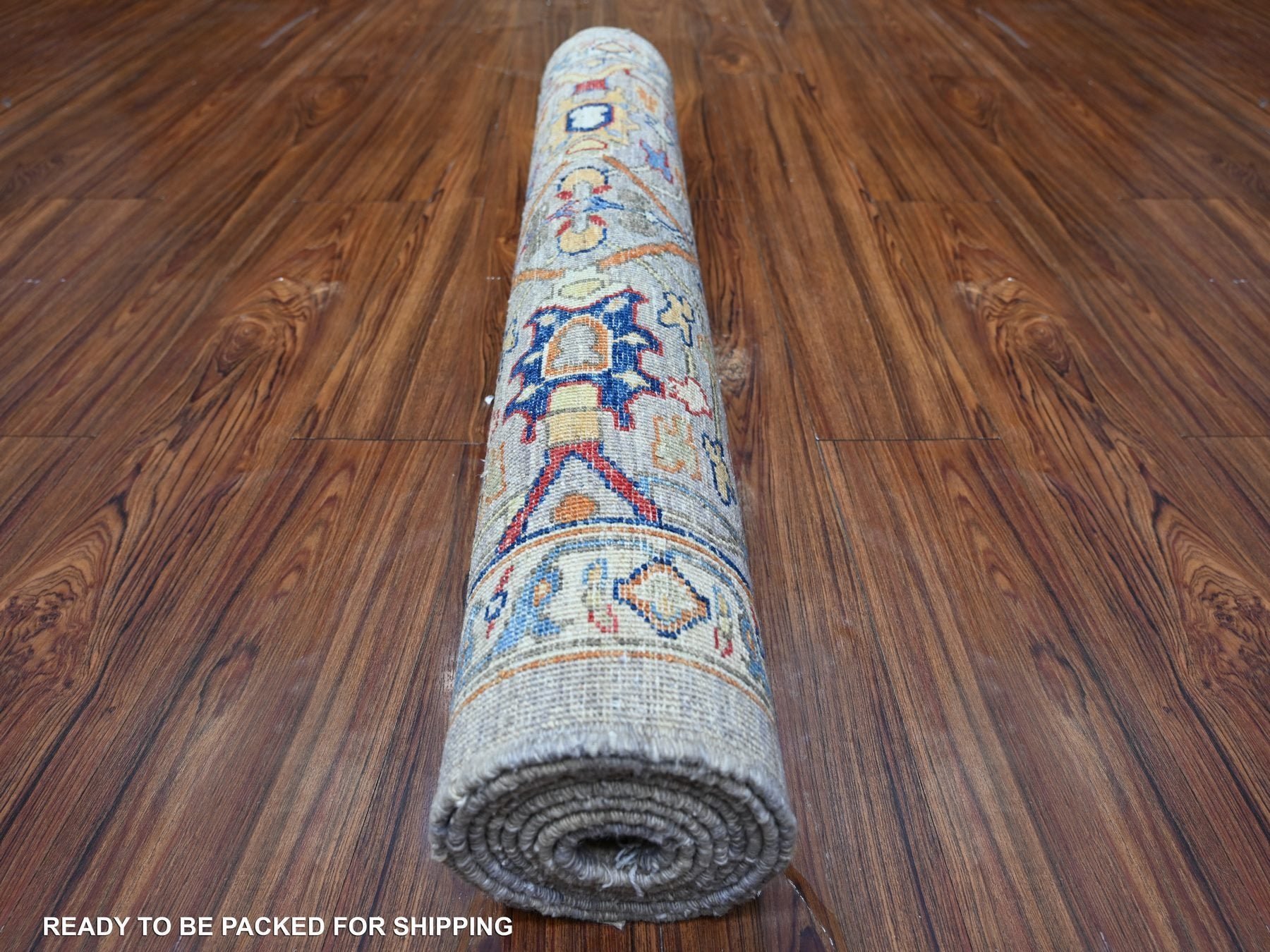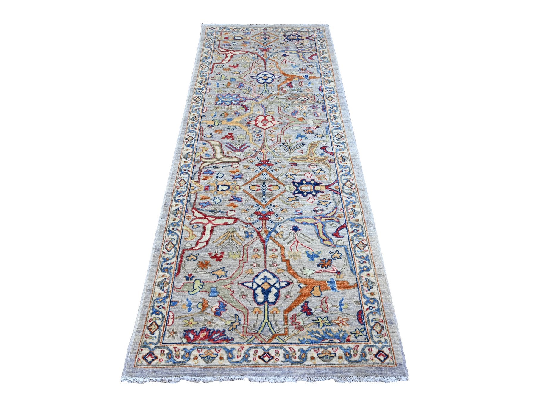 3'1" x 8'2" New Hand Knotted Grey Wool Runner Oriental Rug - MOA10288261