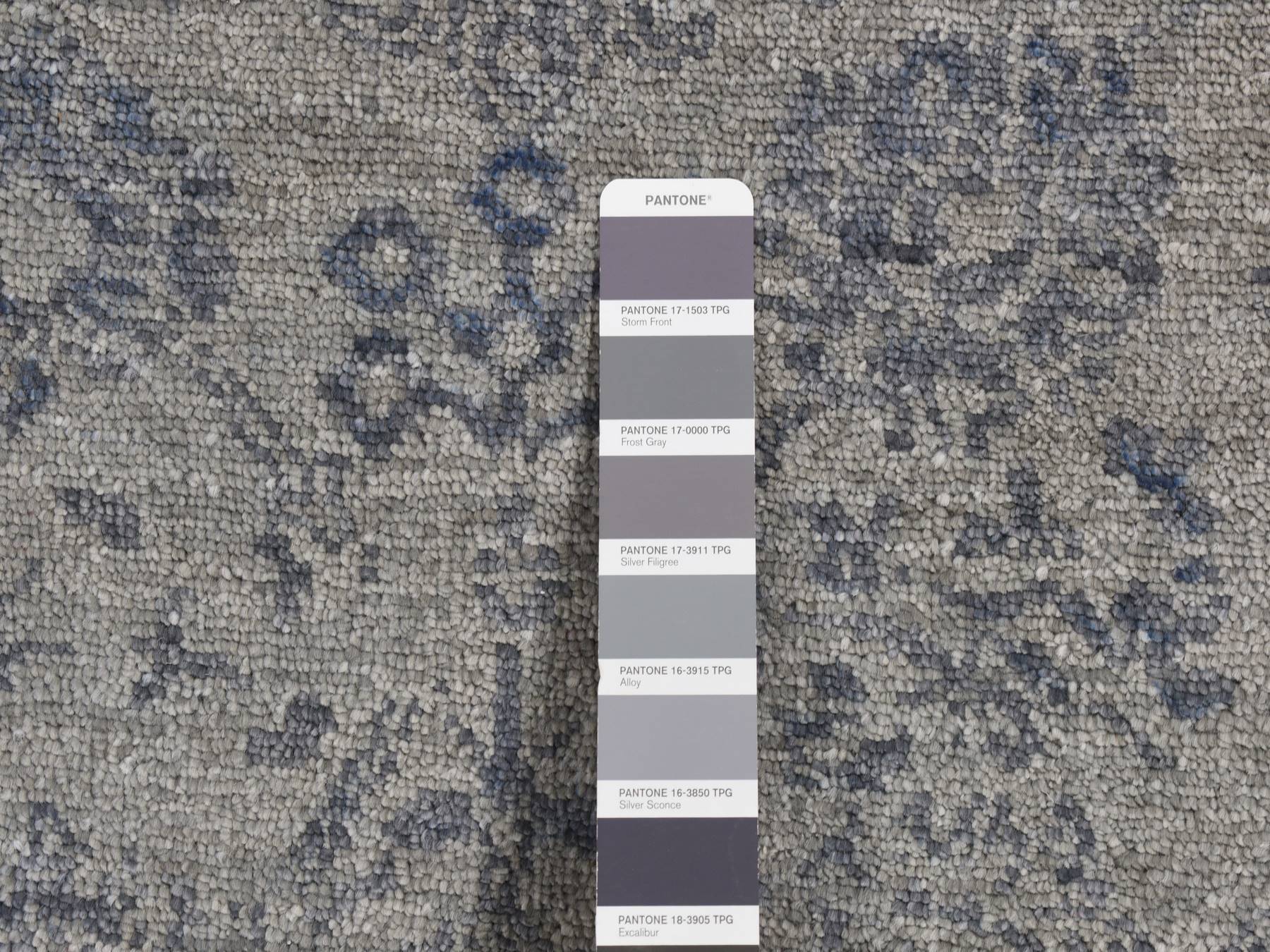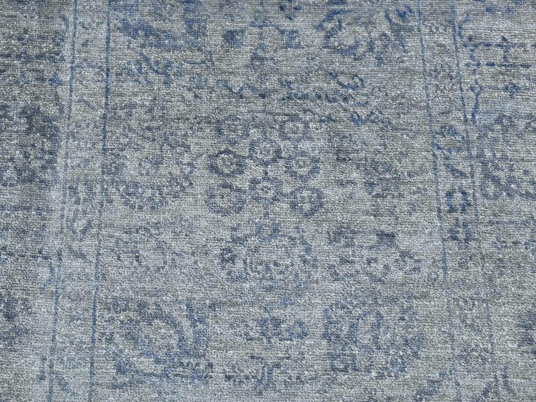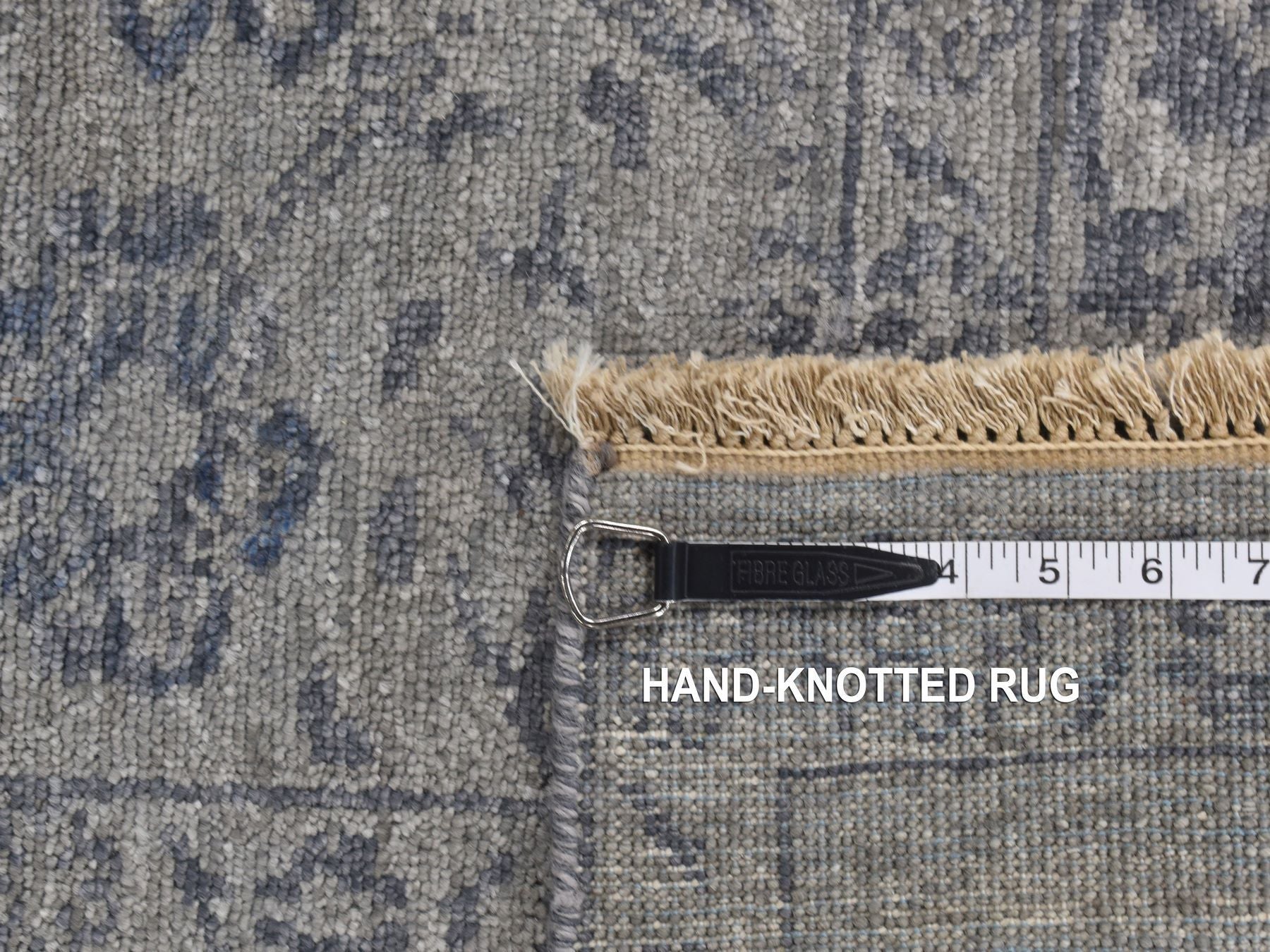 3'1" x 8'3" New Hand Knotted Grey Wool & Silk Runner Oriental Rug - MOA10287201