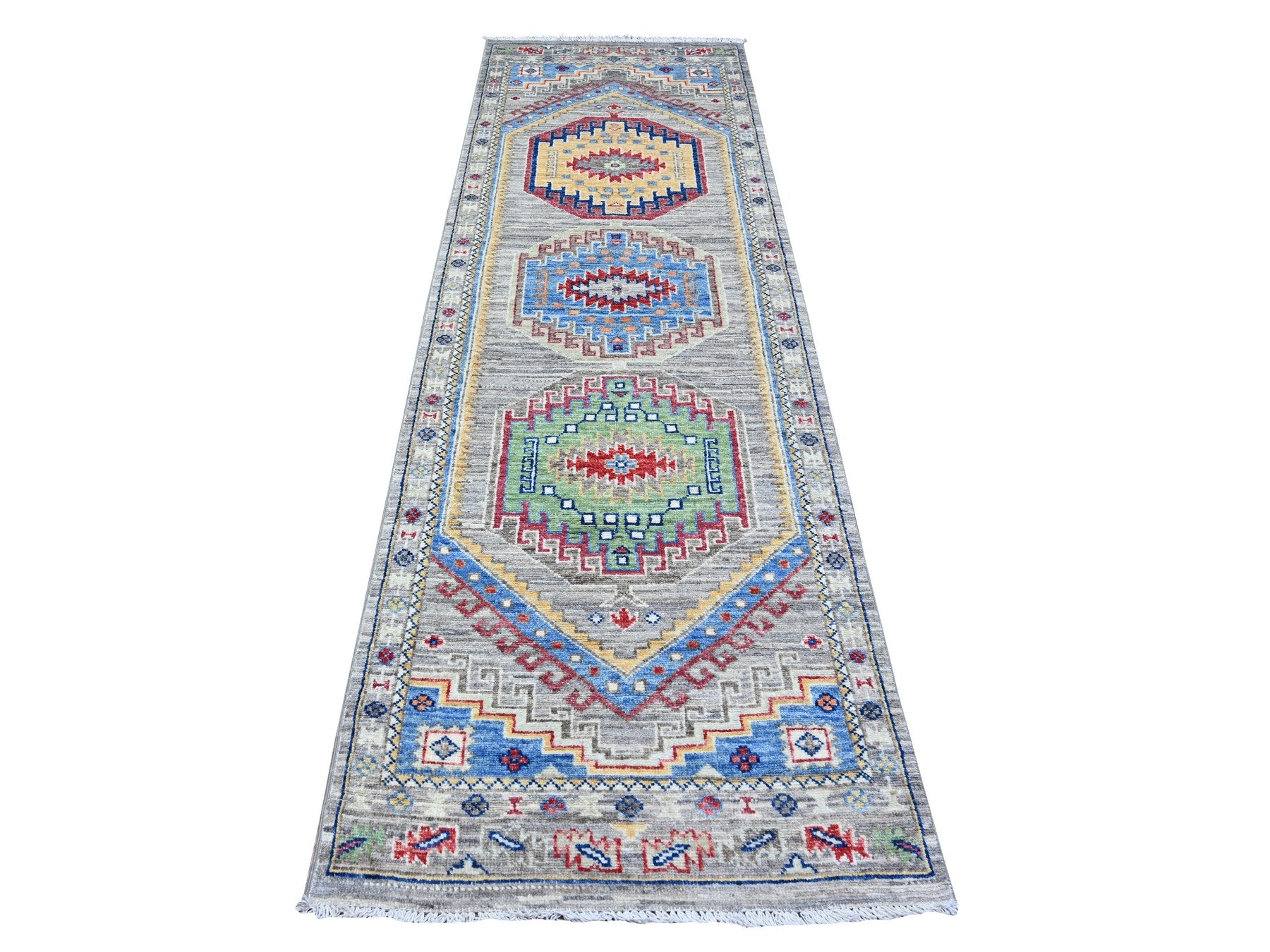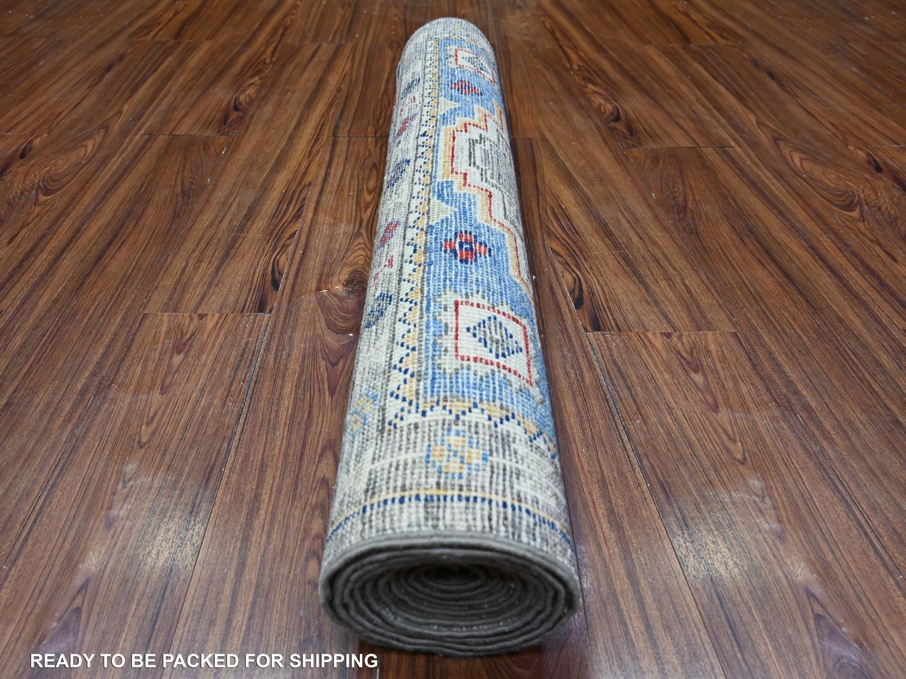 3'1" x 9'9" New Hand Knotted Grey Wool Runner Oriental Rug - MOA10288247