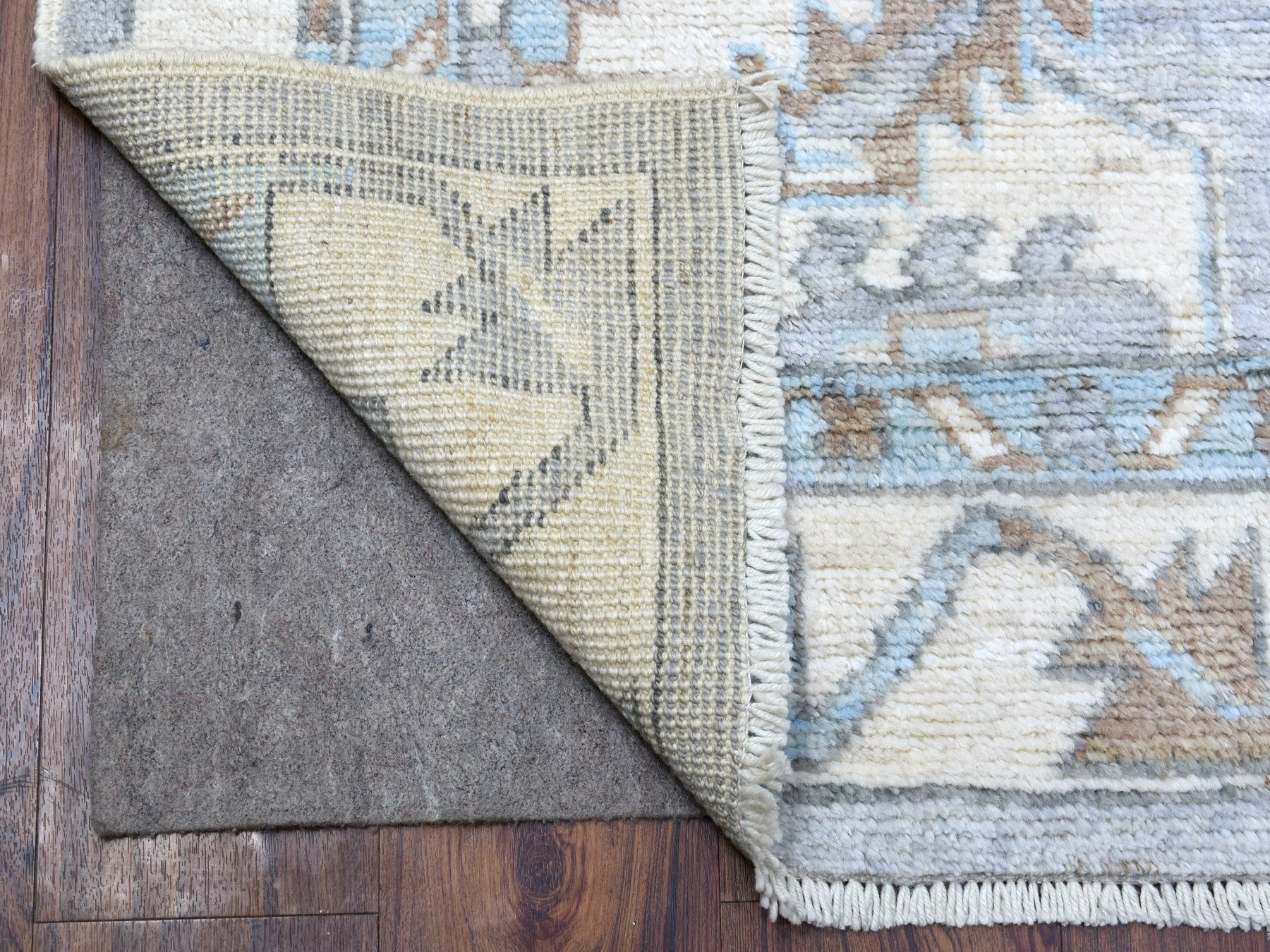 3'10" x 12'1" New Hand Knotted Grey Wool Runner Oriental Rug - MOA10267916
