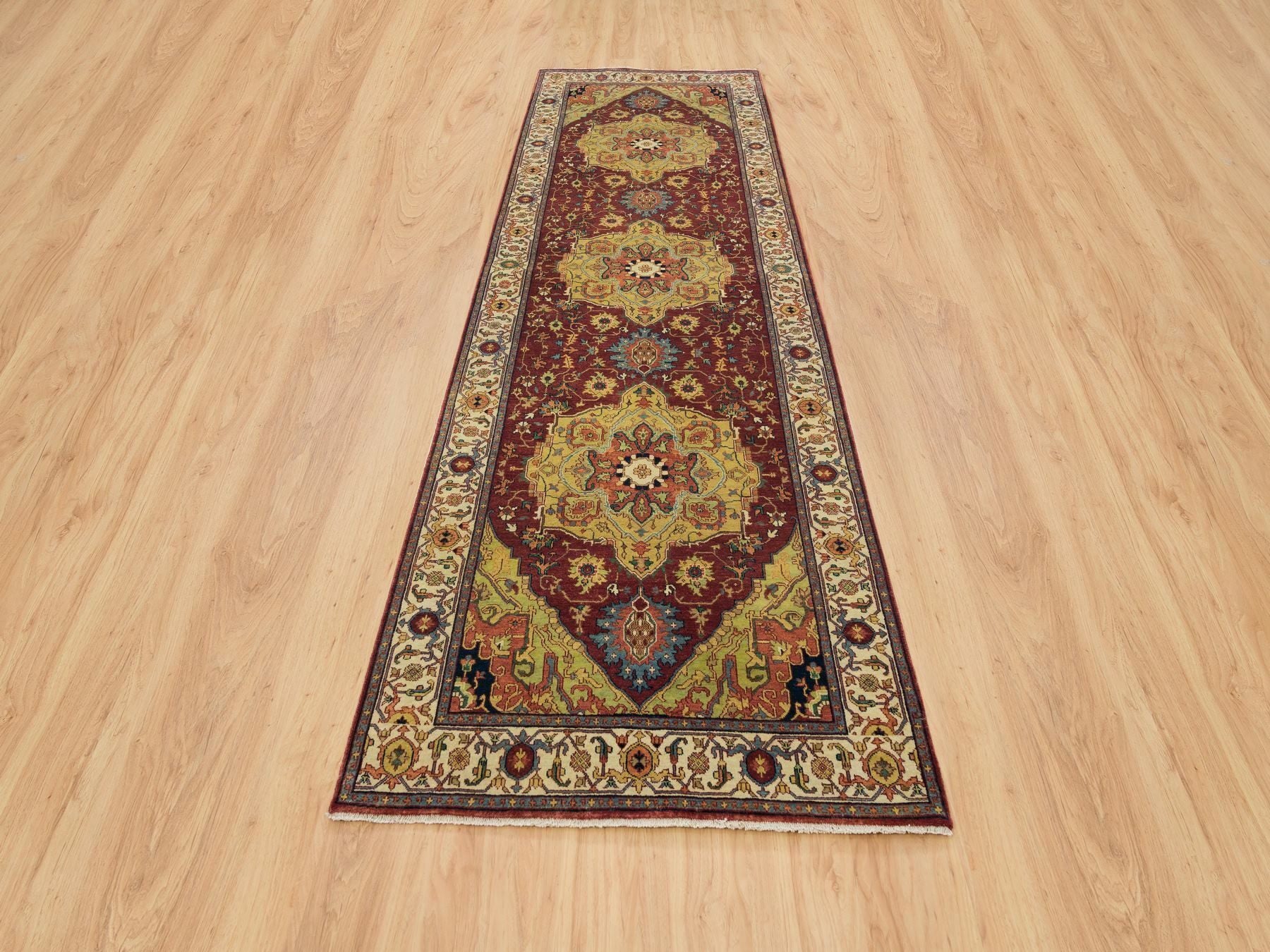 3'10" x 12'1" New Hand Knotted Red Wool Runner Oriental Rug - MOA10265499