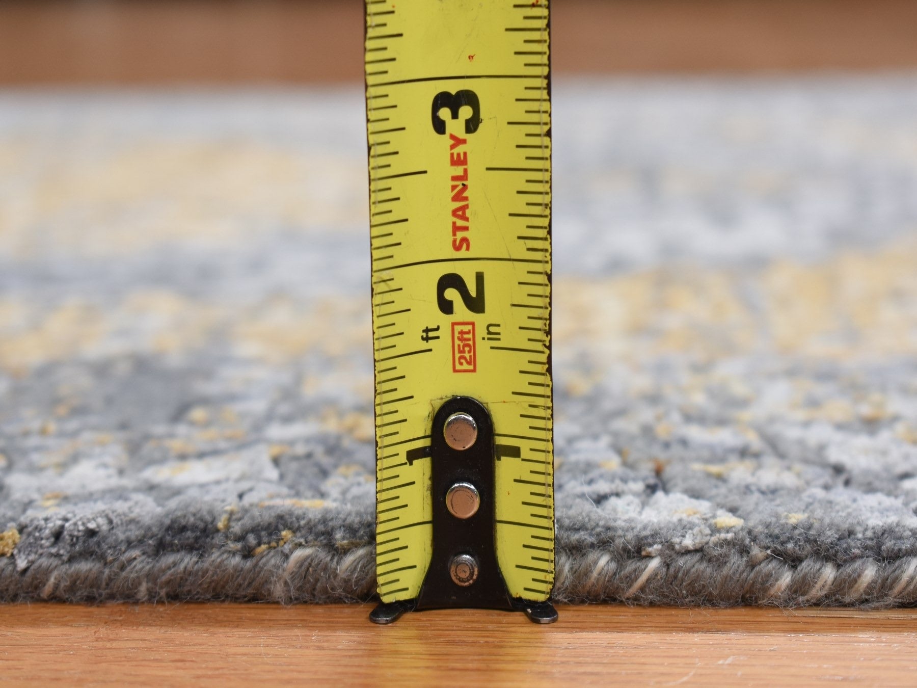 3'2" x 10'0" New Hand Knotted Grey Wool & Silk Runner Oriental Rug - MOA10278052