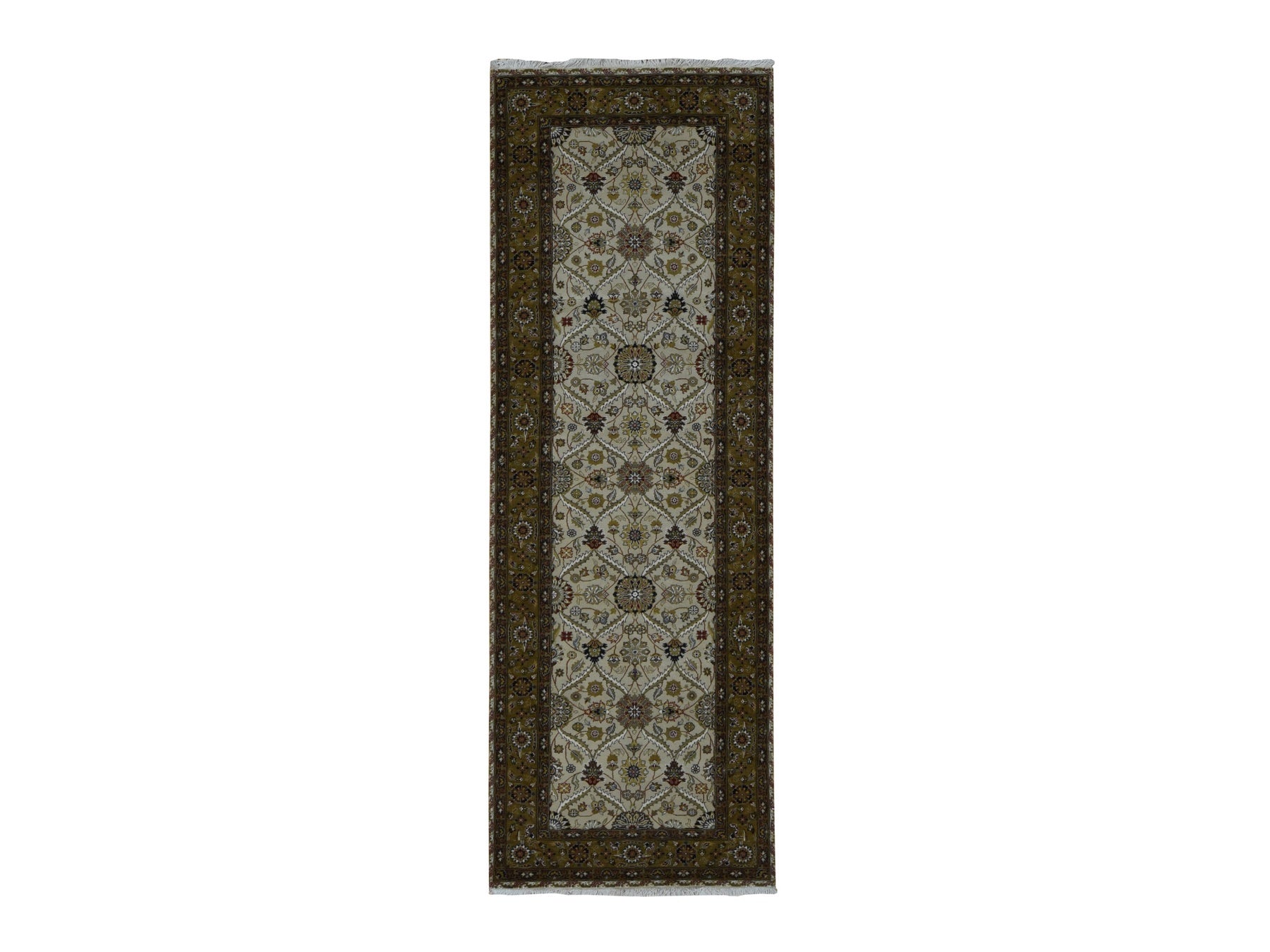 3'6" x 10'3" New Hand Knotted Brown Wool & Silk Runner Oriental Rug - MOA10287624