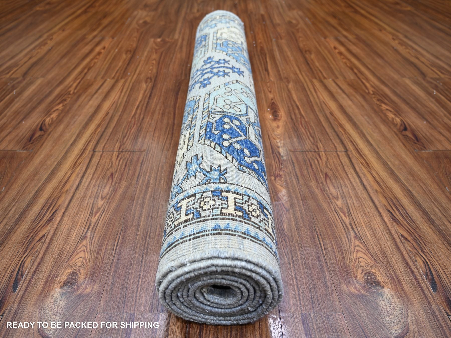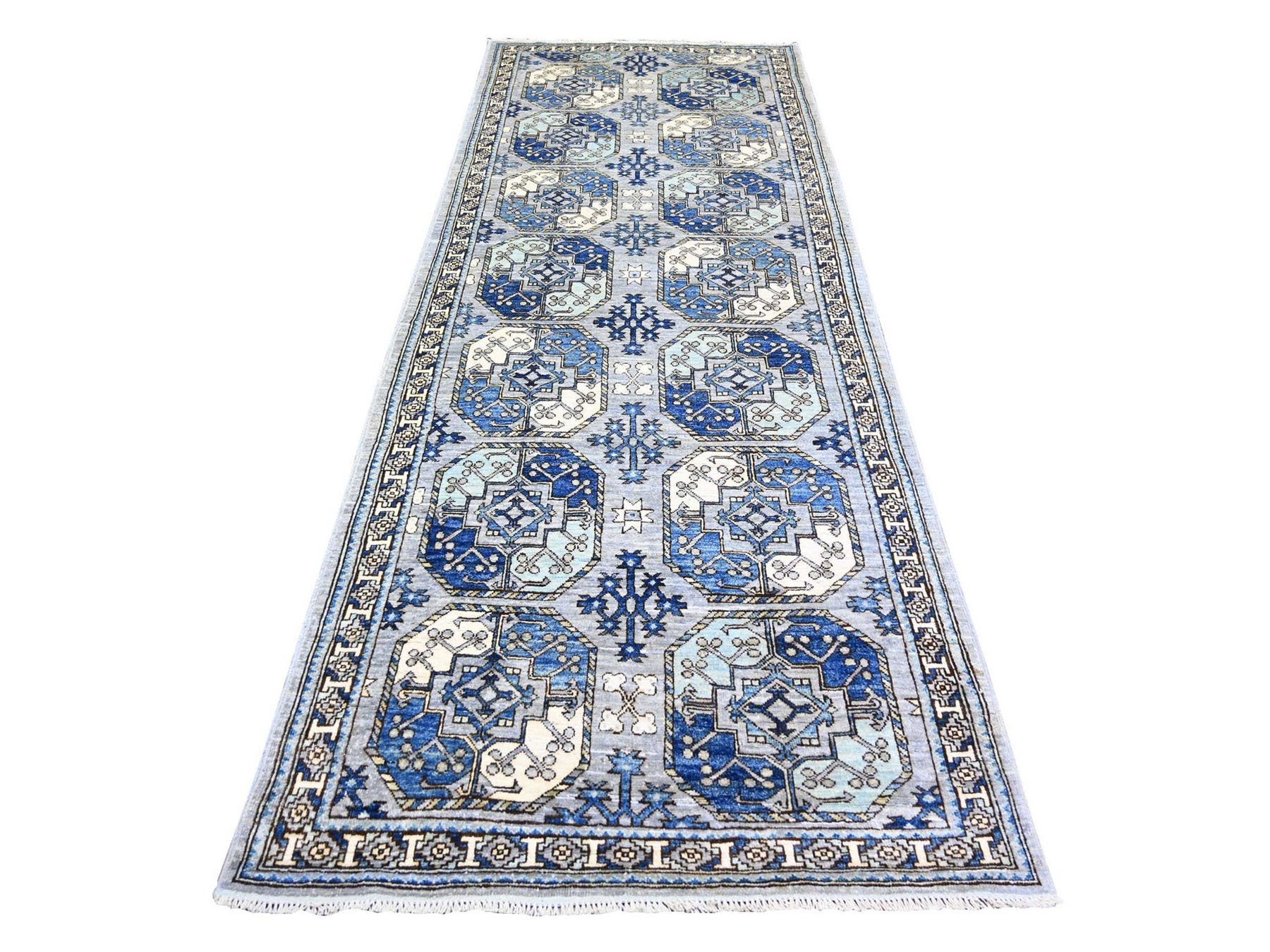 4'0" x 10'1" New Hand Knotted Grey Wool Runner Oriental Rug - MOA10273558