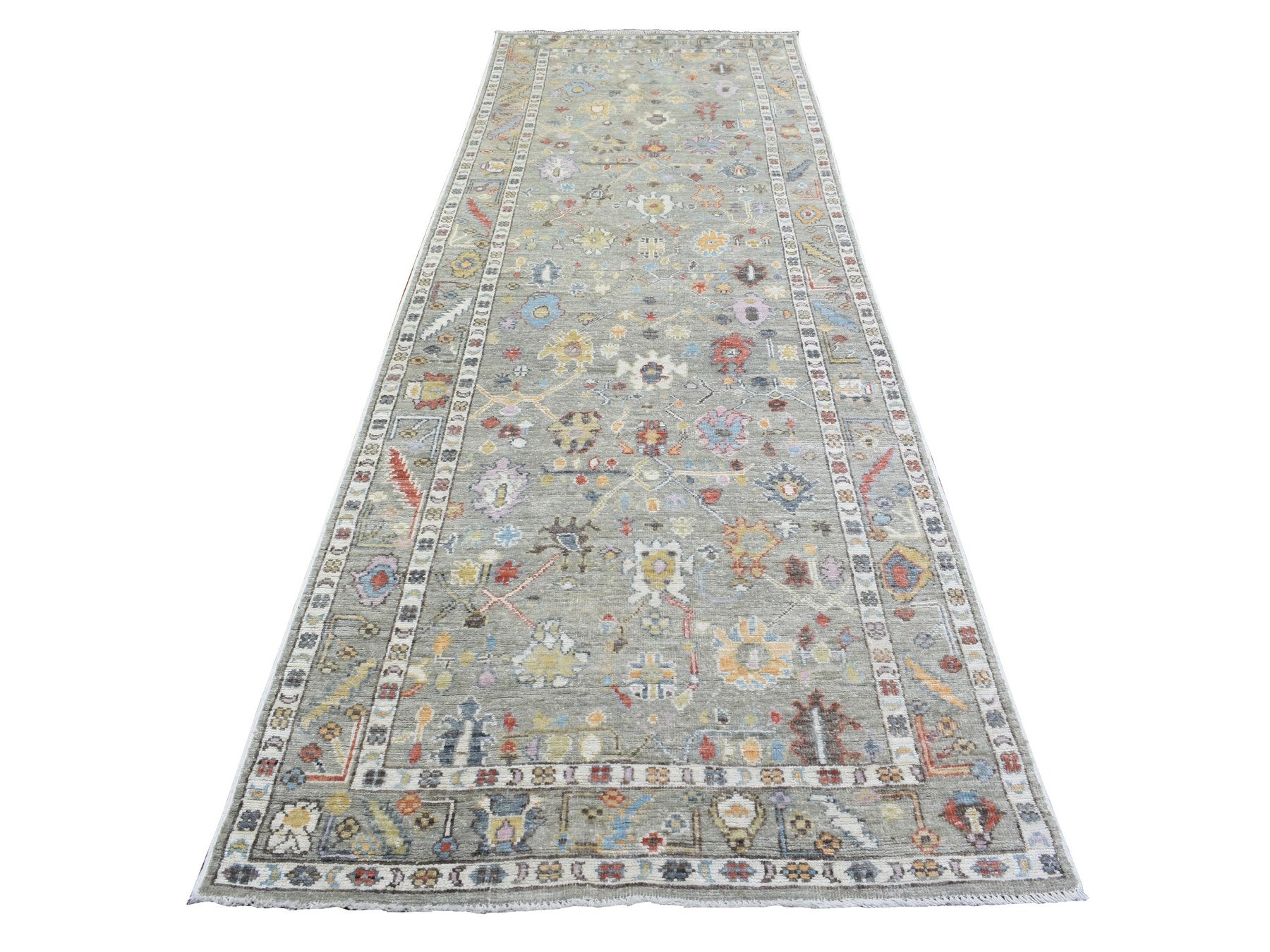 4'0" x 11'10" New Hand Knotted Grey Wool Runner Oriental Rug - MOA10272904