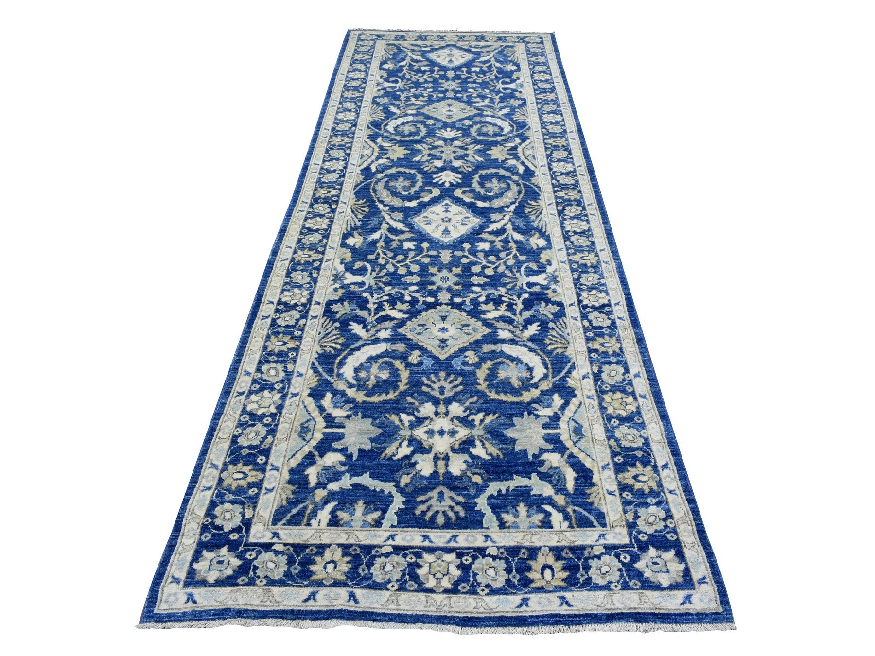 4'0" x 11'8" New Hand Knotted Blue Wool Runner Oriental Rug - MOA10272827