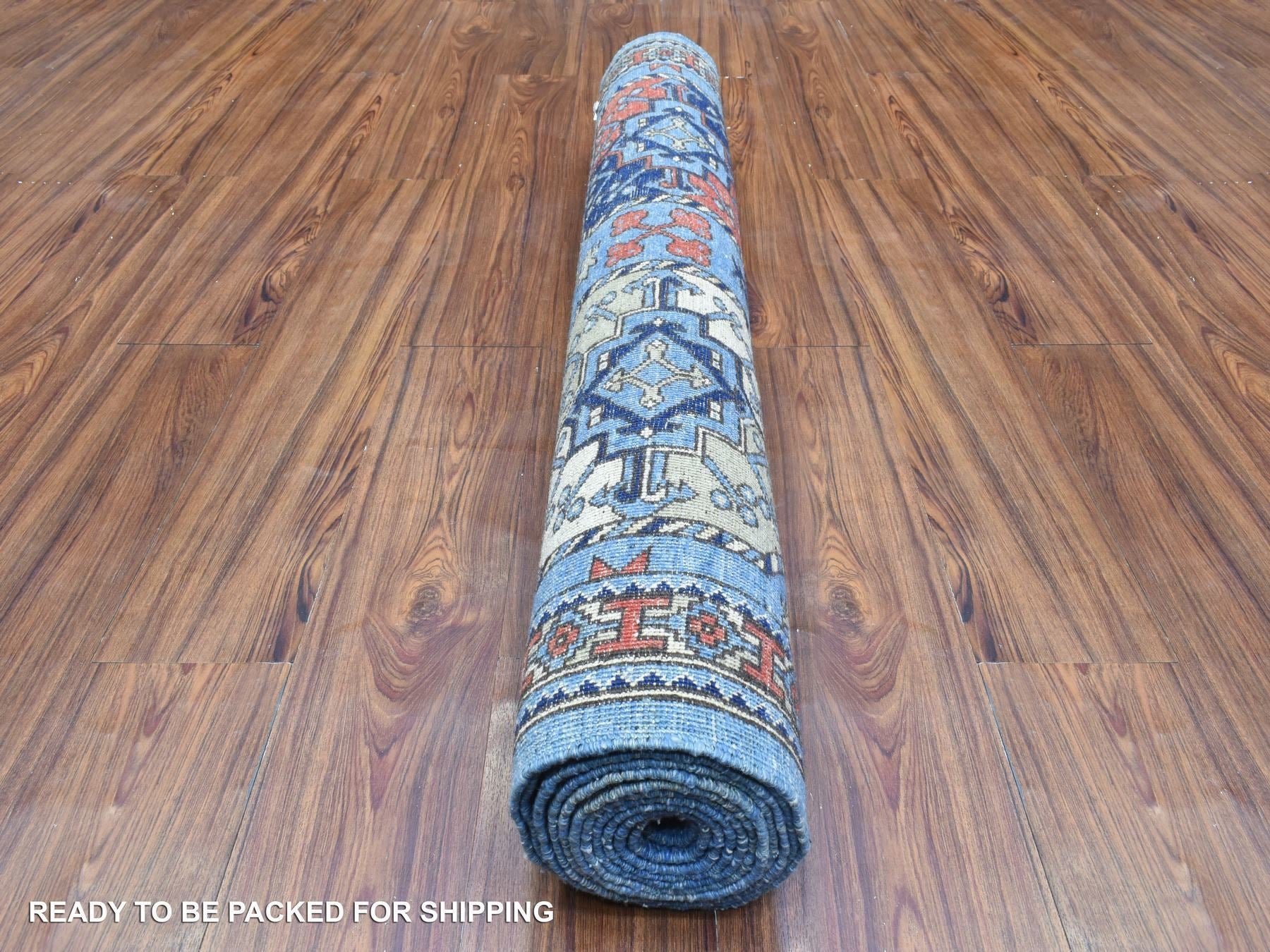4'0" x 11'8" New Hand Knotted Blue Wool Runner Oriental Rug - MOA10273016
