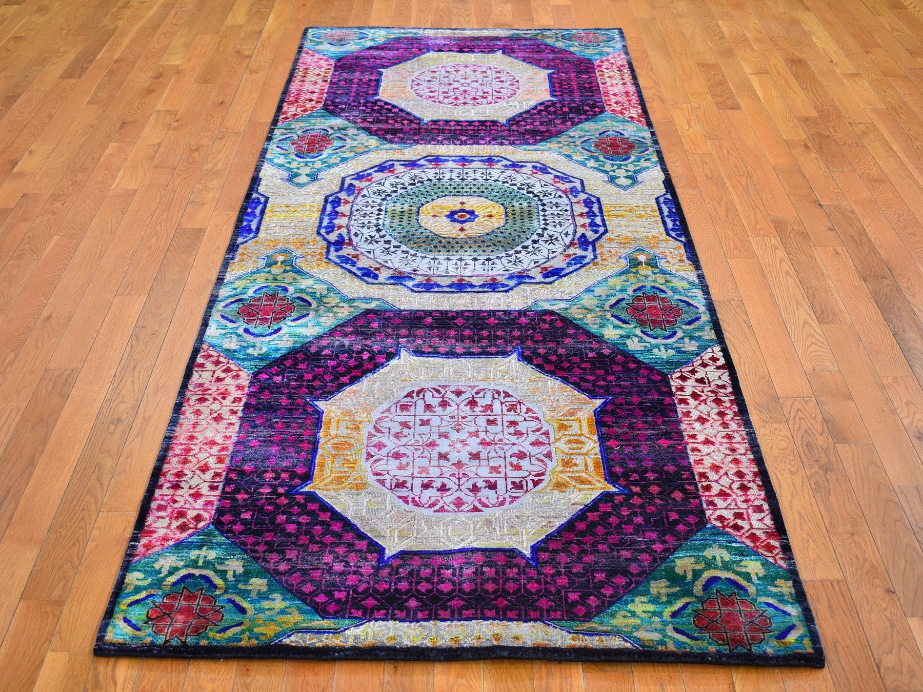 4'1" x 10'4" New Hand Knotted Yellow Wool & Silk Runner Oriental Rug - MOA10266494