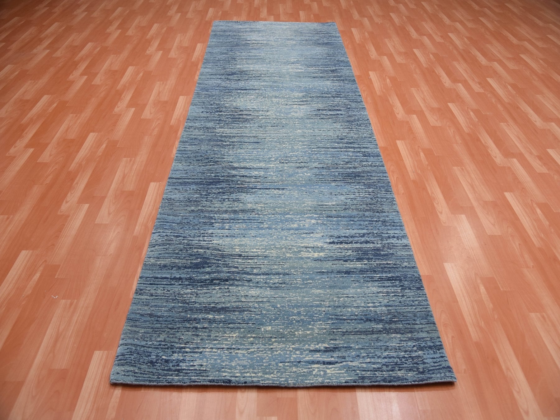4'1" x 12'2" New Hand Knotted Blue Wool Runner Oriental Rug - MOA10275020