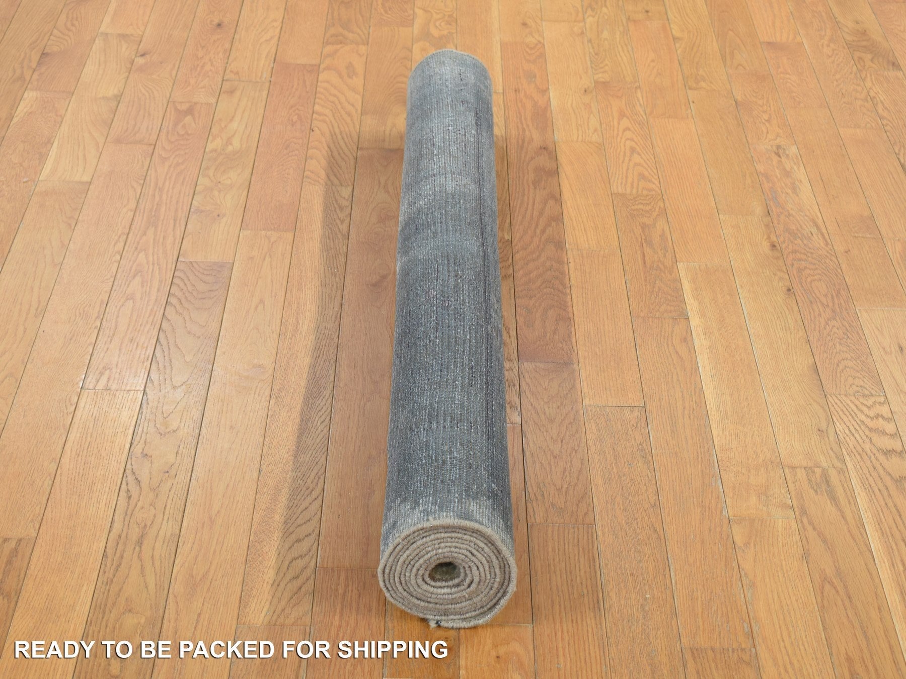 4'1" x 9'2" New Hand Knotted Grey Wool Runner Oriental Rug - MOA10287961