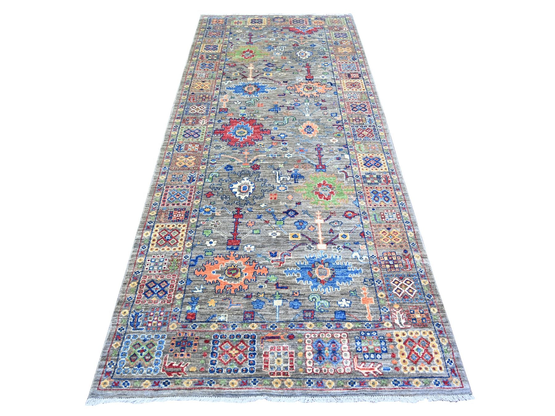 4'1" x 9'8" New Hand Knotted Grey Wool Runner Oriental Rug - MOA10274560