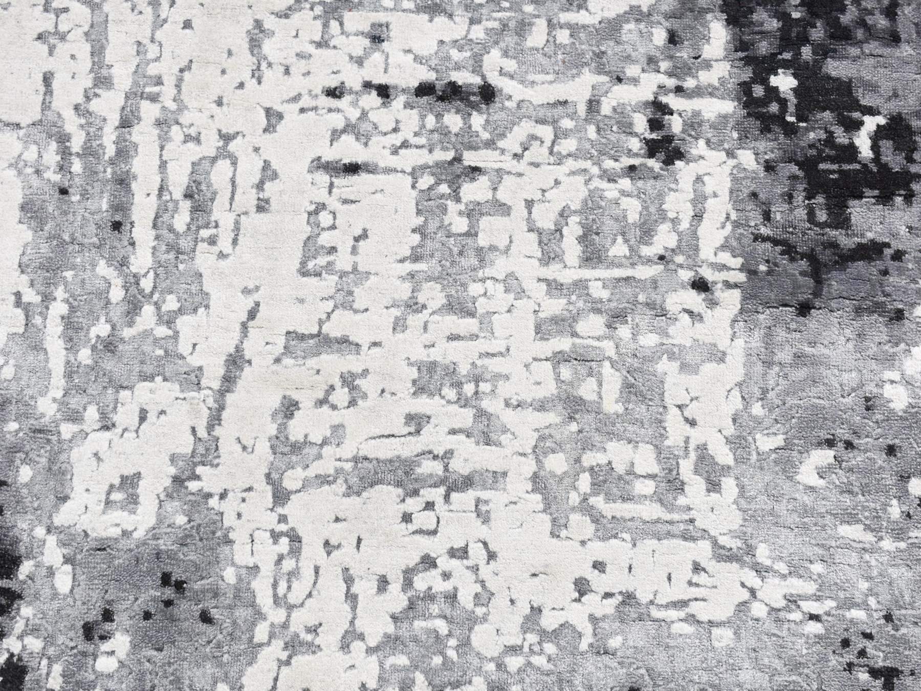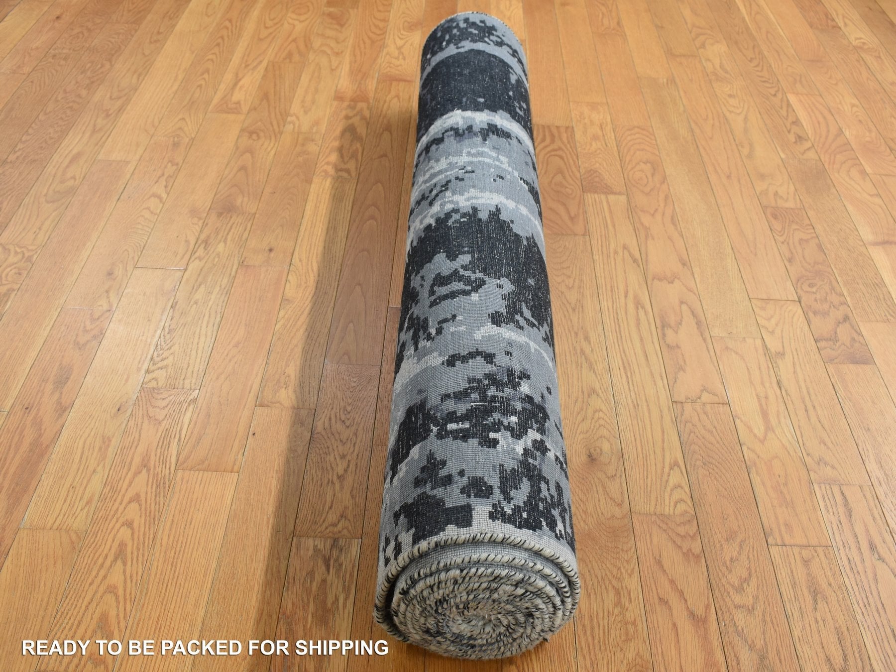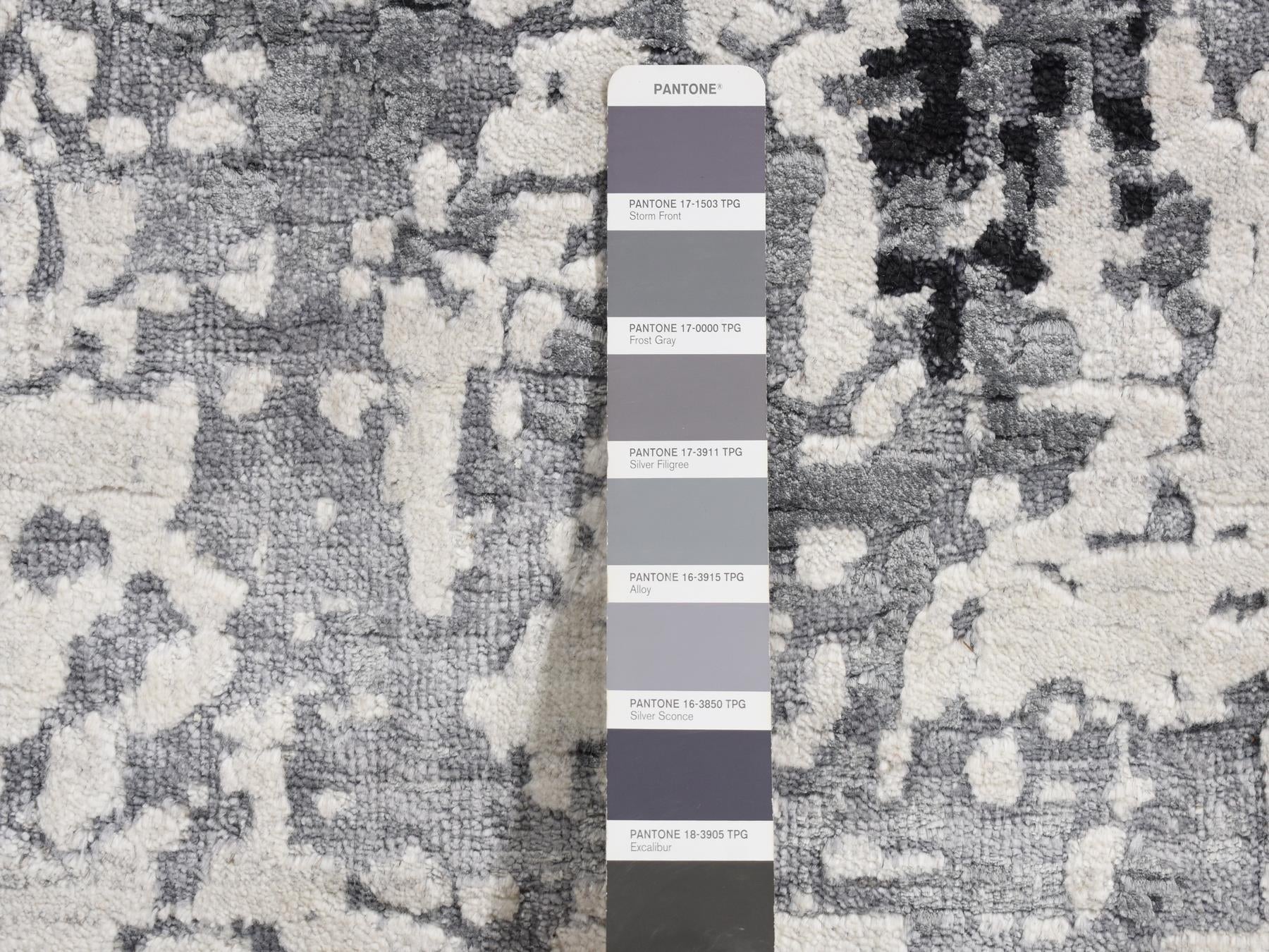 4'2" x 13'1" New Hand Knotted Grey Wool & Silk Runner Oriental Rug - MOA10287680