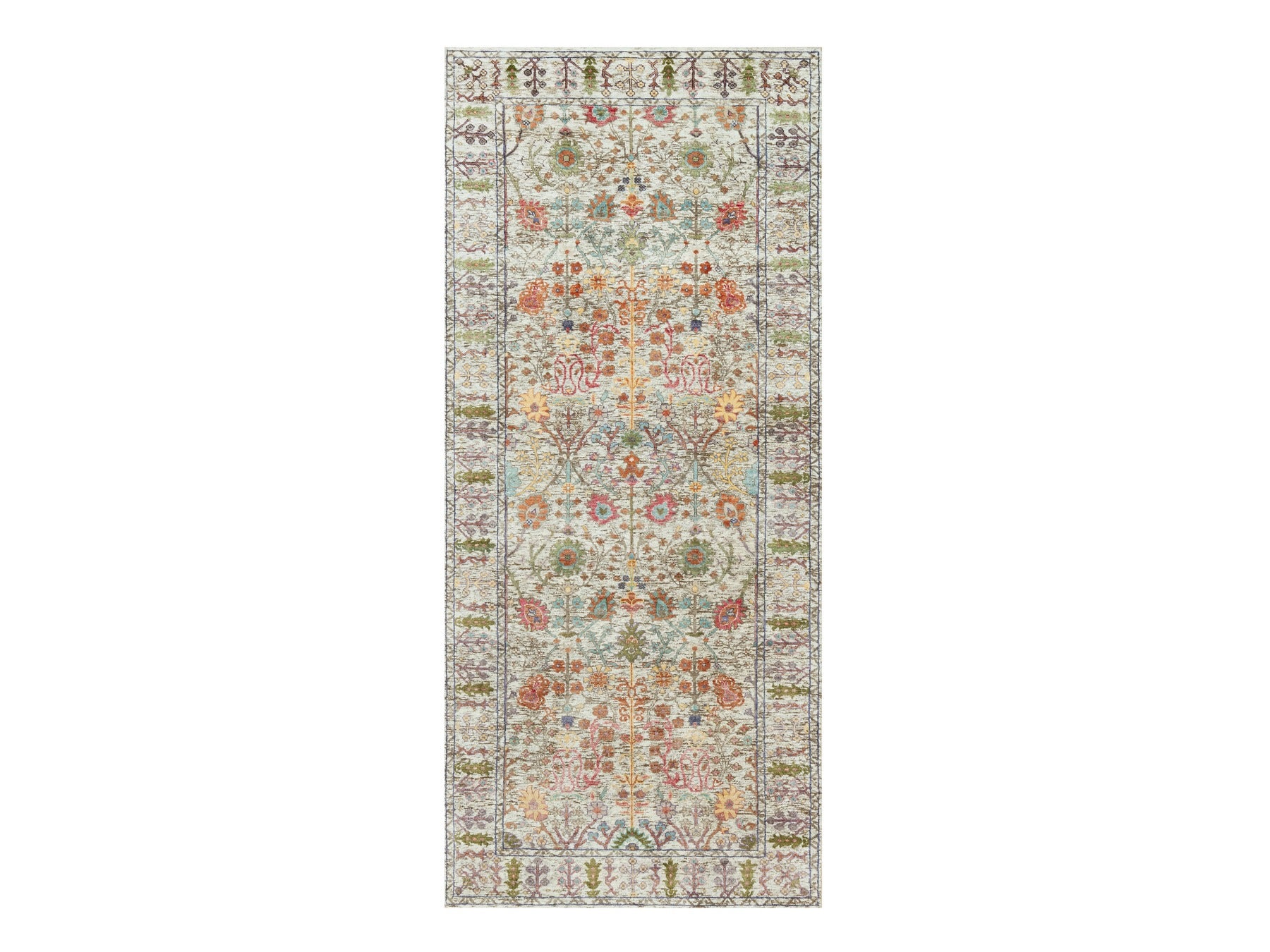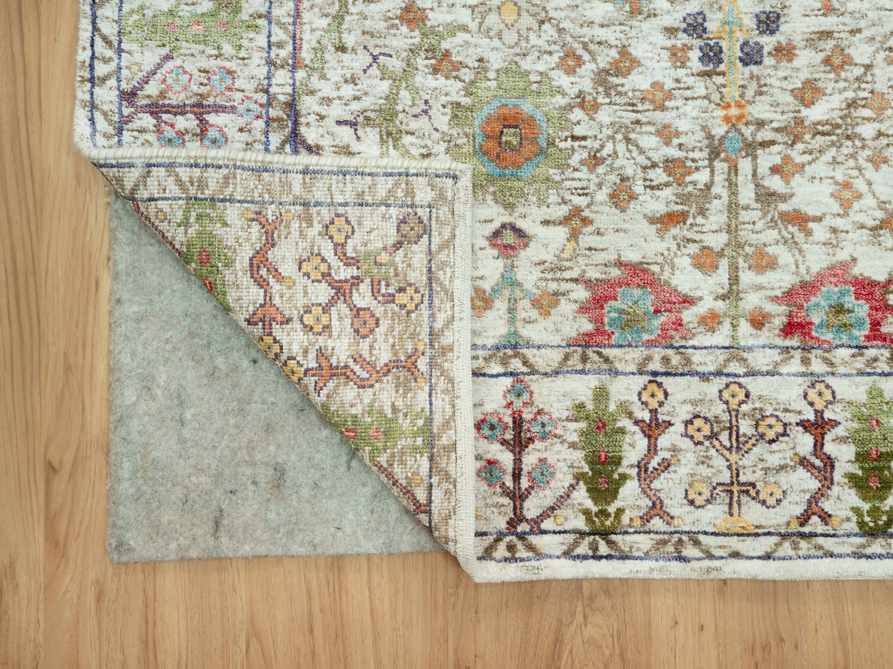 4'2" x 9'11" New Hand Knotted Beige Wool & Silk Runner Oriental Rug - MOA10290675