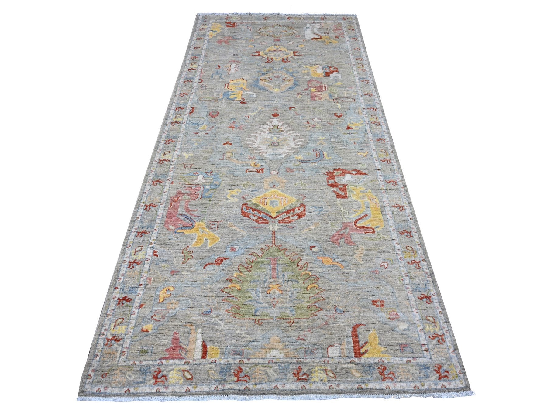 4'2" x 9'6" New Hand Knotted Grey Wool Runner Oriental Rug - MOA10289495