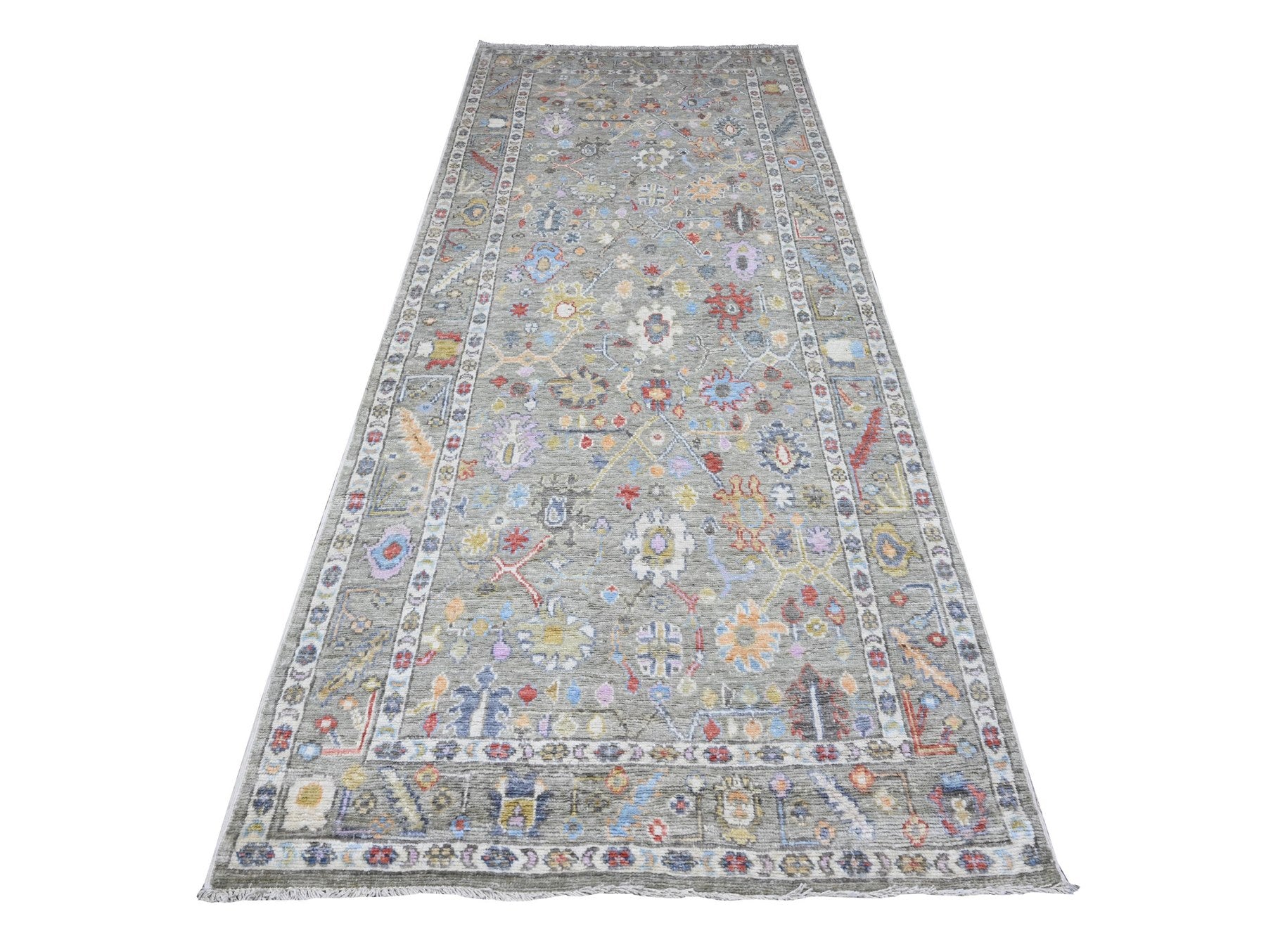 4'5" x 10'0" New Hand Knotted Green Wool Runner Oriental Rug - MOA10289647