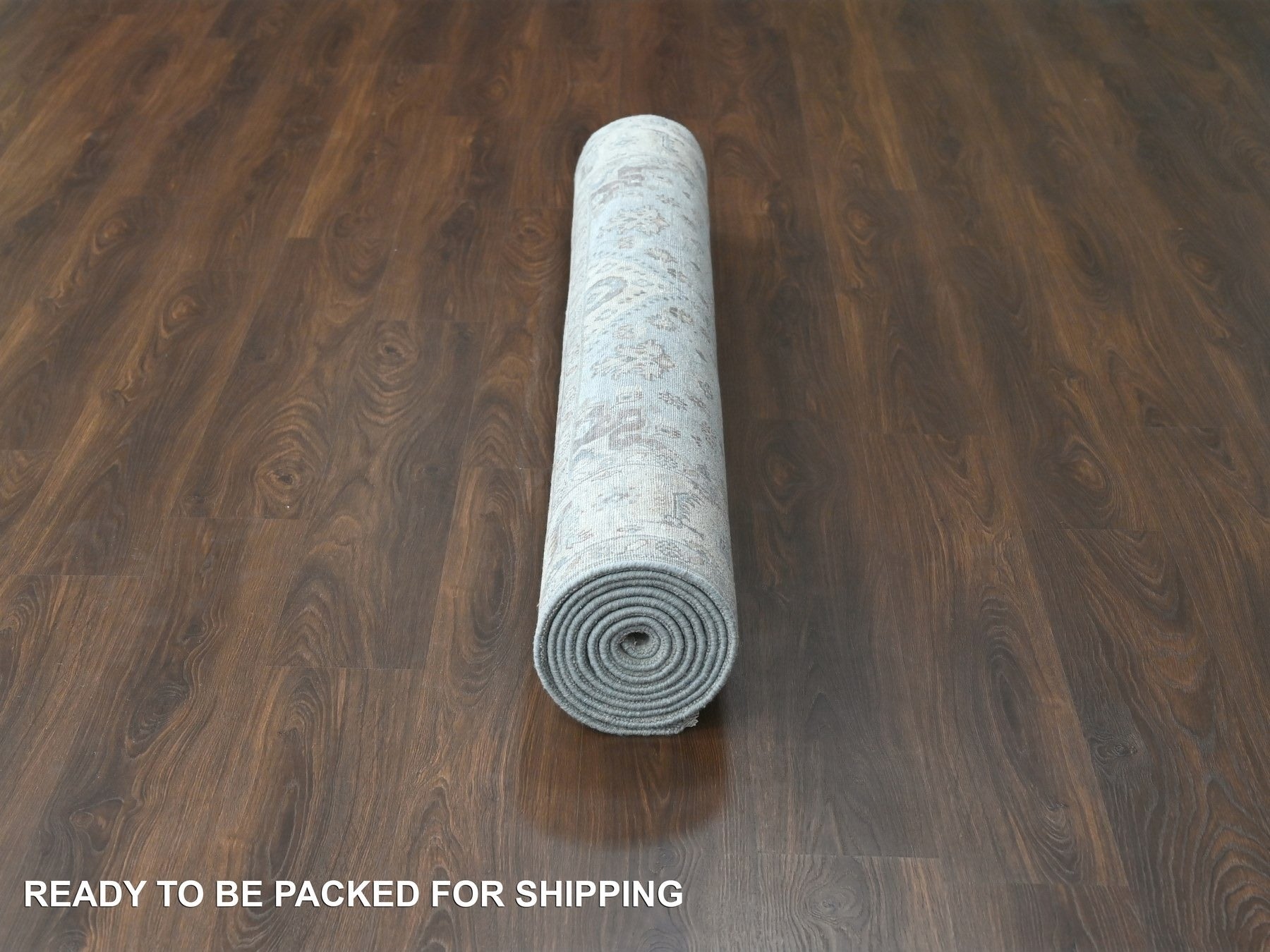 6'0" x 11'9" New Hand Knotted Grey Wool Runner Oriental Rug - MOA10284906