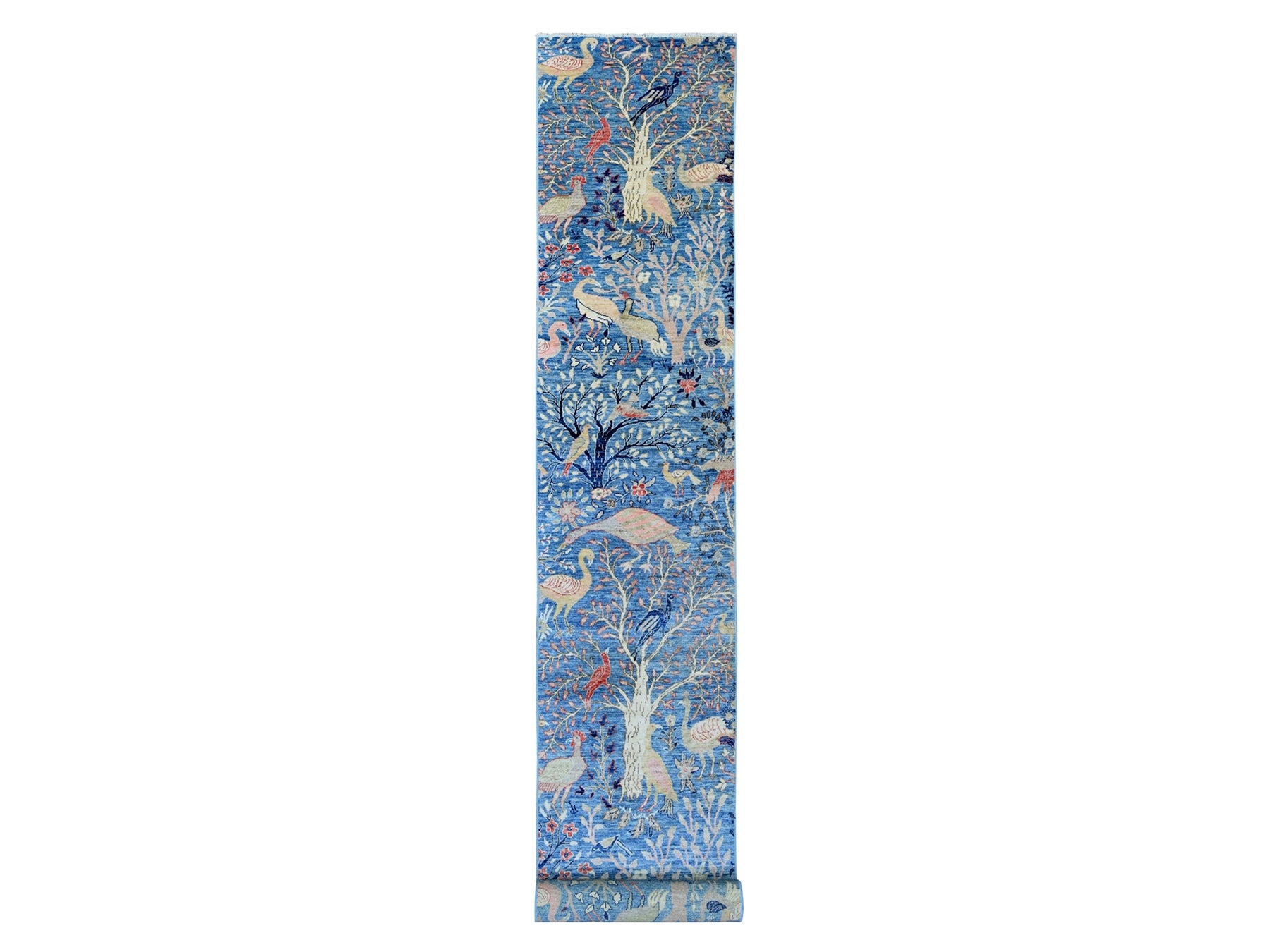 2'10" x 23'6" New Hand Knotted Blue Wool Runner Oriental Rug - MOA10220638