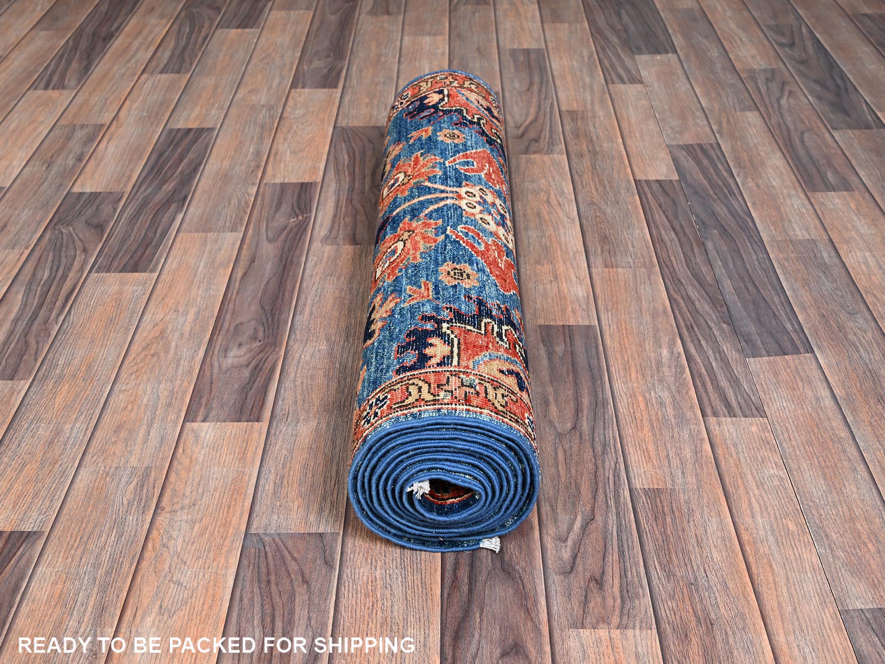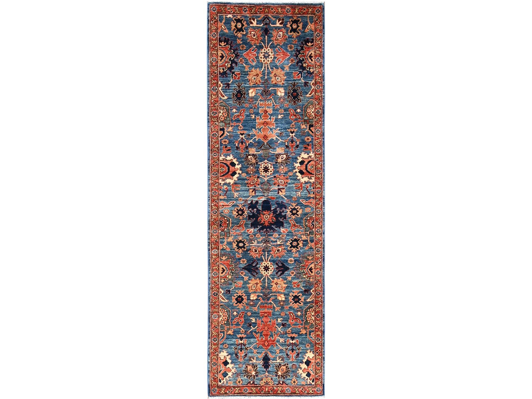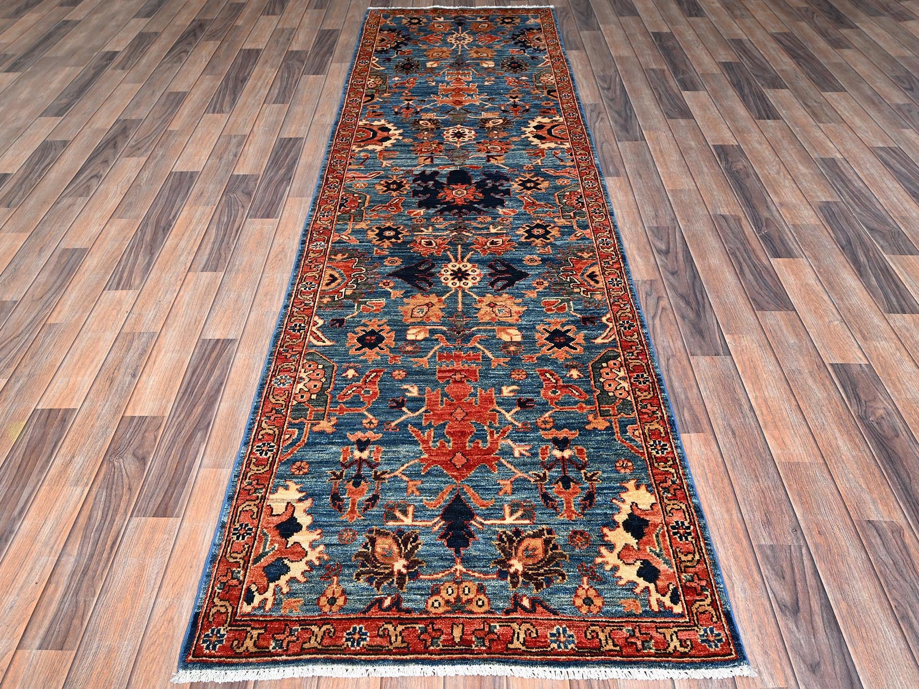 2'10" x 9'7" New Hand Knotted Blue Wool Runner Oriental Rug - MOA1021115