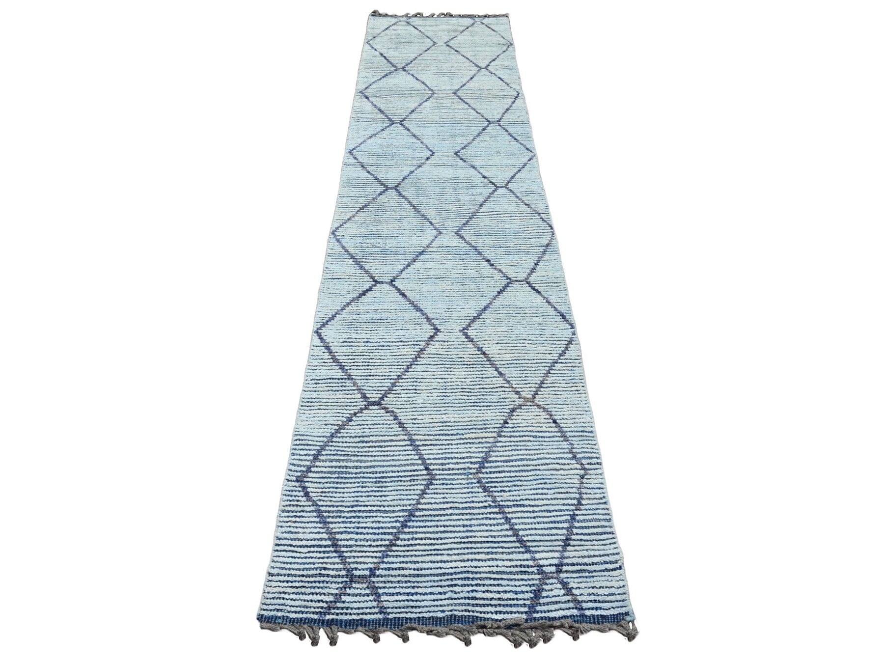 2'5" x 10'3" New Hand Knotted Blue Wool Runner Oriental Rug - MOA10220291