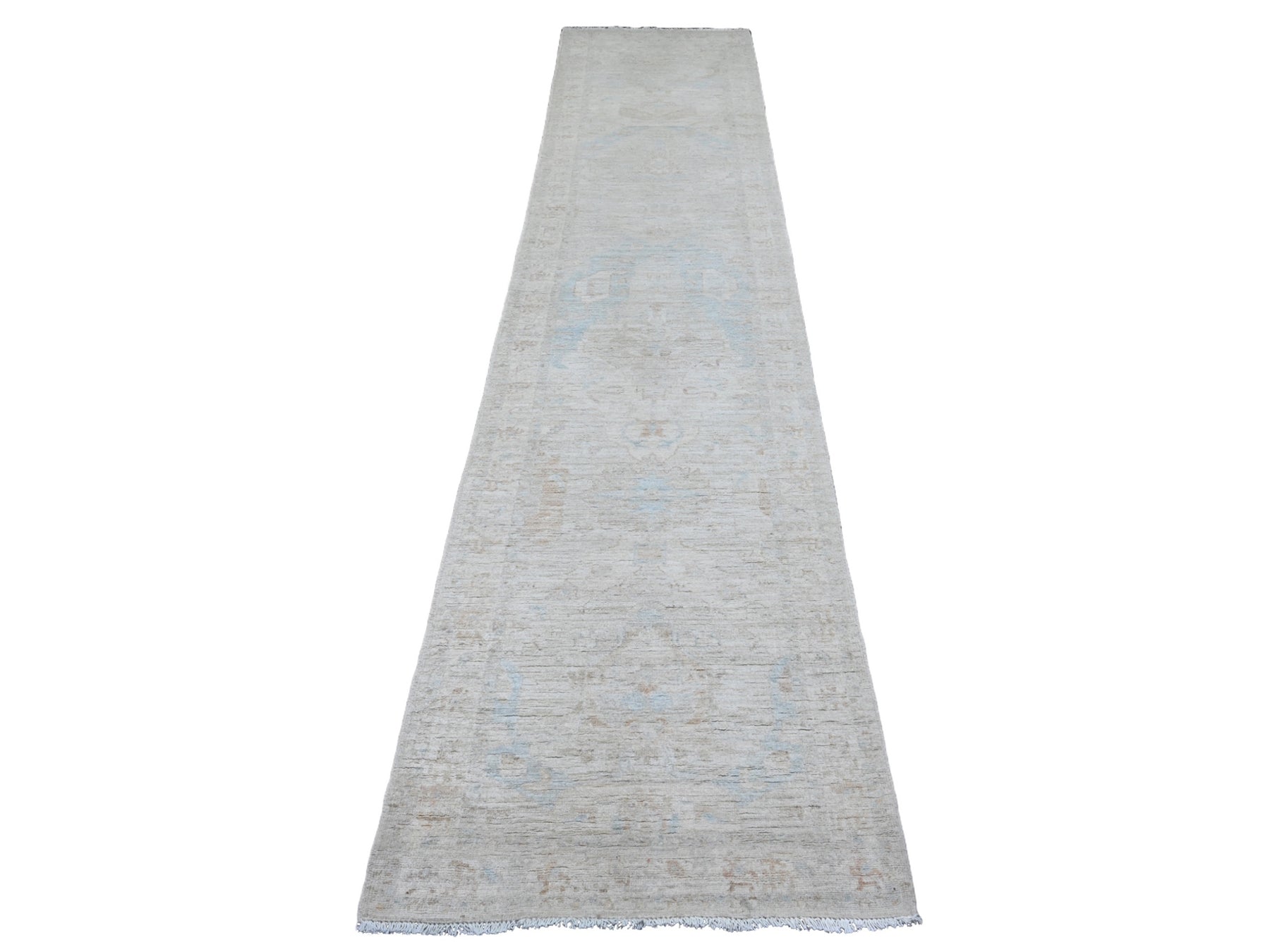 2'6" x 11'7" New Hand Knotted Grey Wool Runner Oriental Rug - MOA10220867