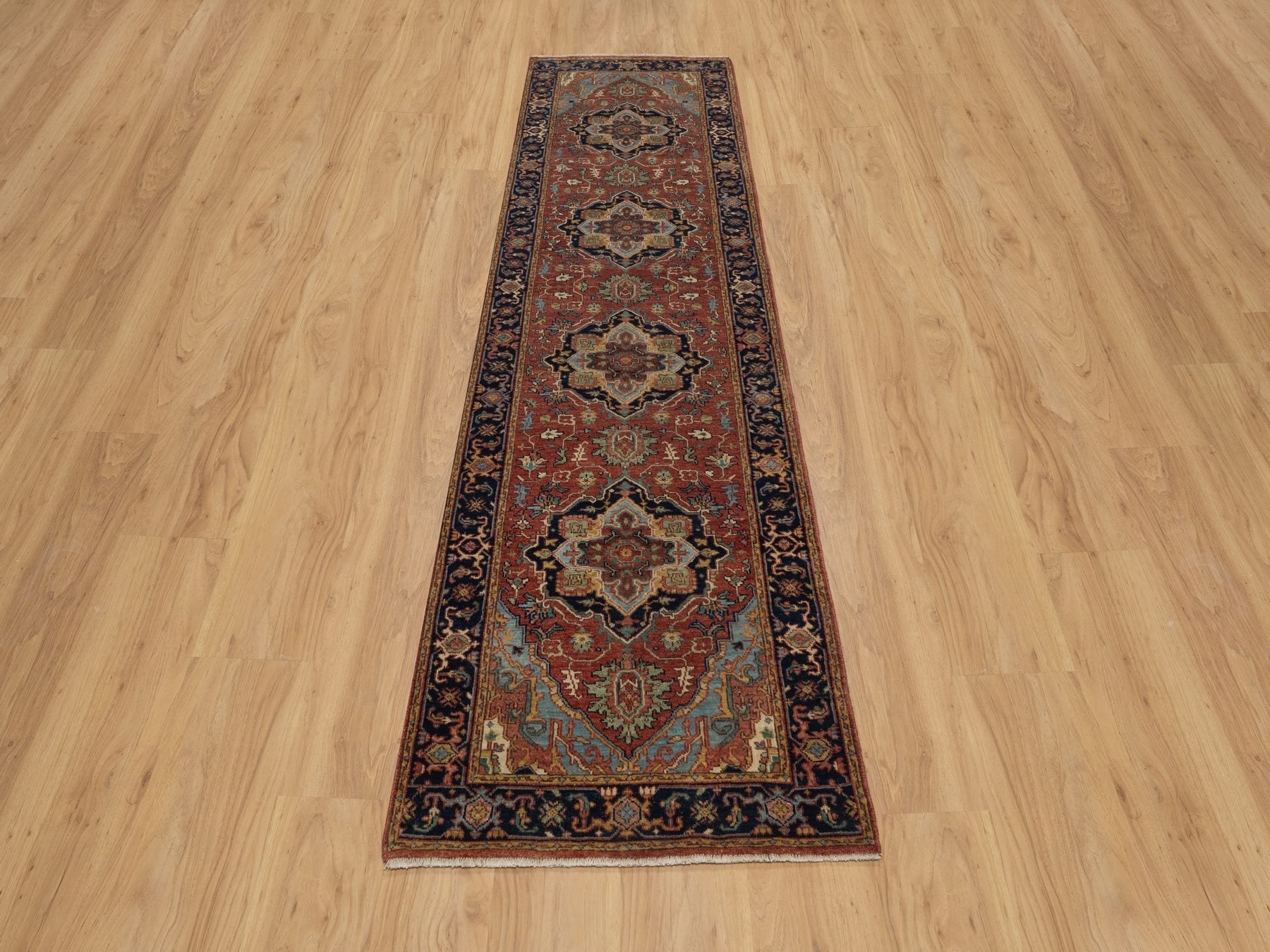 2'7" x 10'0" New Hand Knotted Red Wool Runner Oriental Rug - MOA10291379