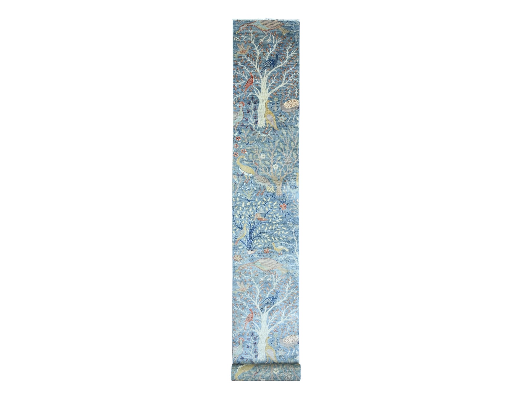 2'7" x 25'8" New Hand Knotted Blue Wool Runner Oriental Rug - MOA10289794