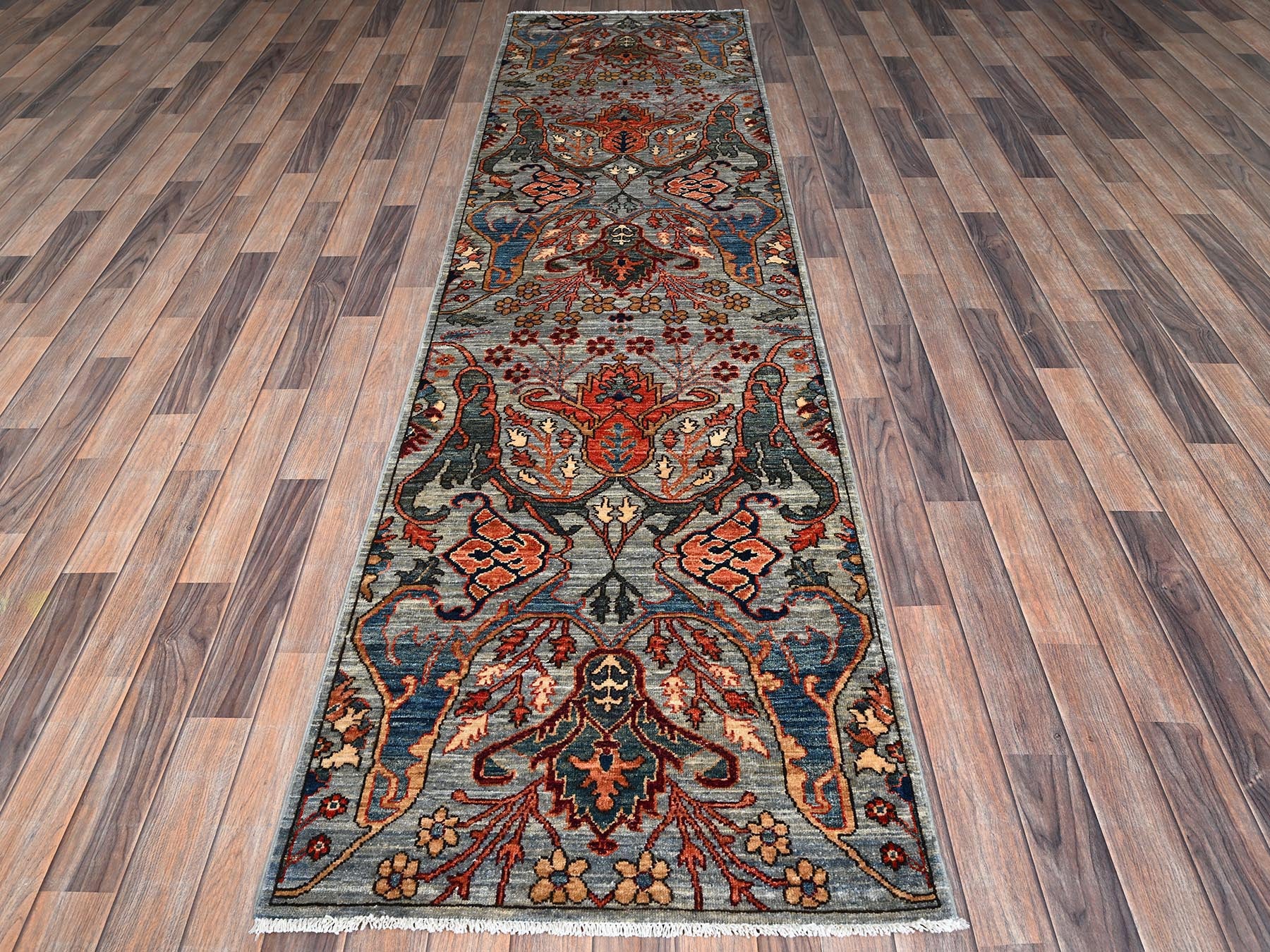 2'8" x 10'1" New Hand Knotted Grey Wool Runner Oriental Rug - MOA1021111