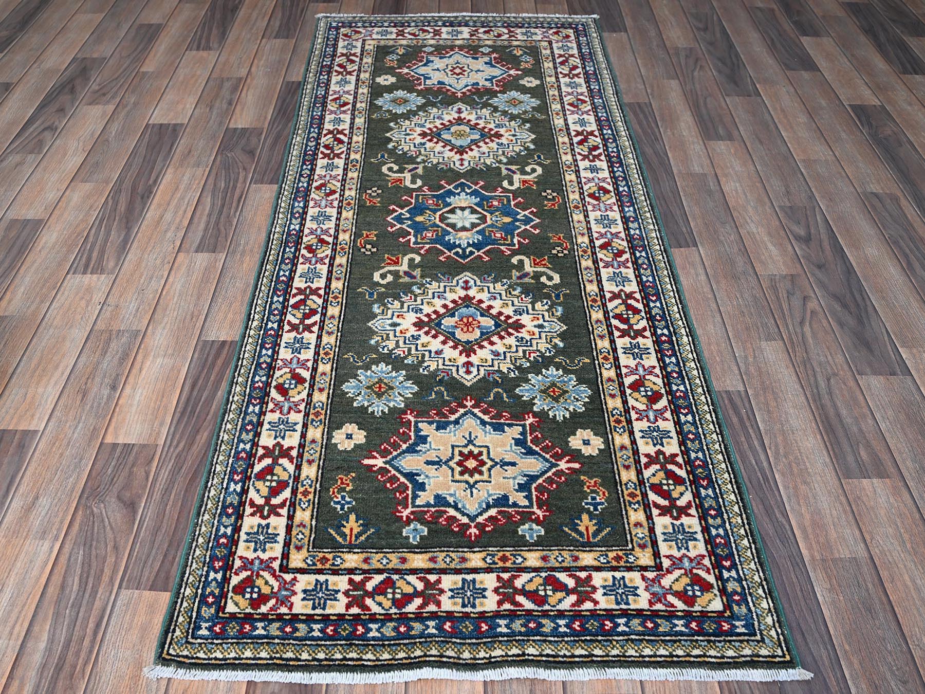 2'8" x 6'5" New Hand Knotted Green Wool Runner Oriental Rug - MOA102445