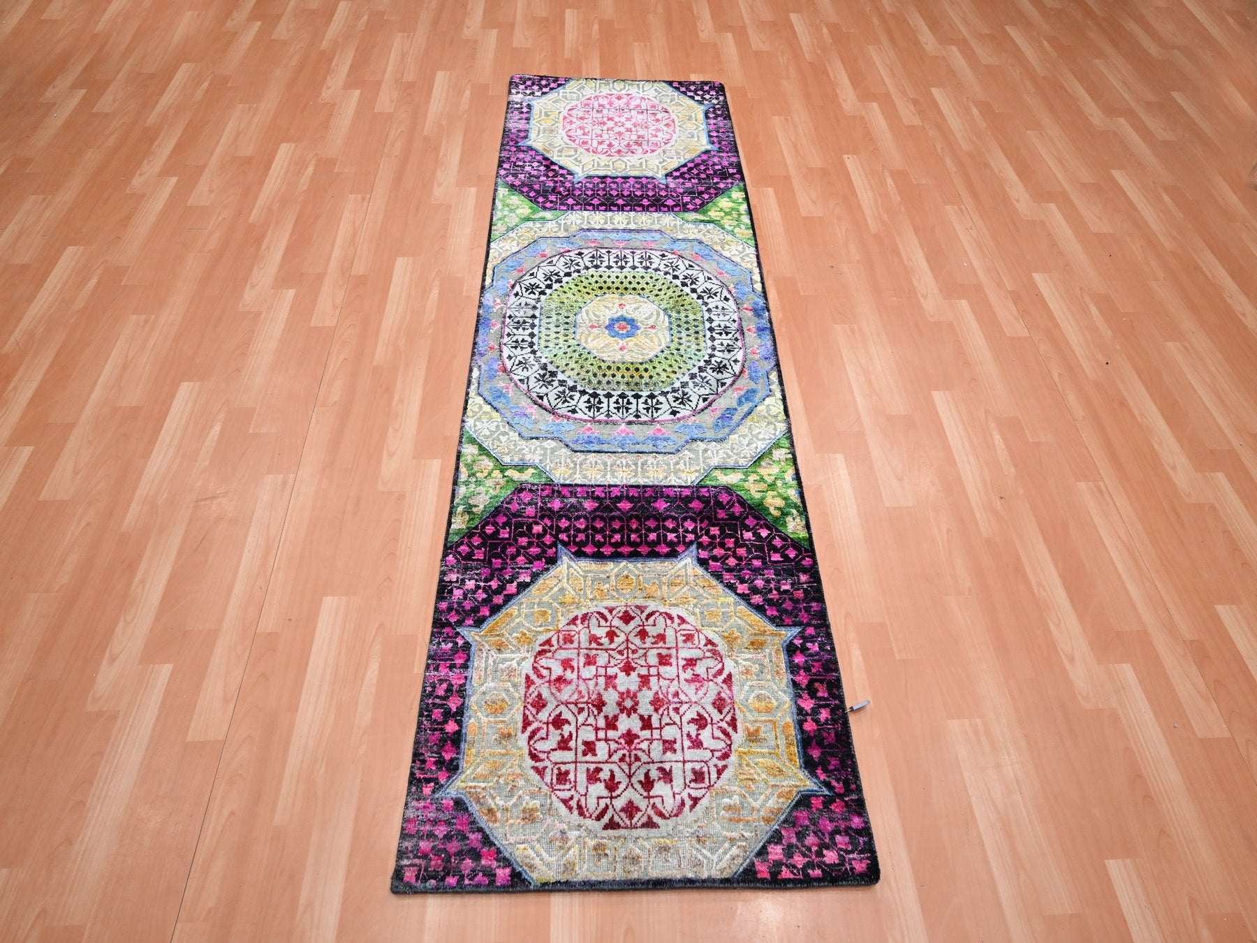 2'8" x 8'1" New Hand Knotted Red Wool & Silk Runner Oriental Rug - MOA10275556