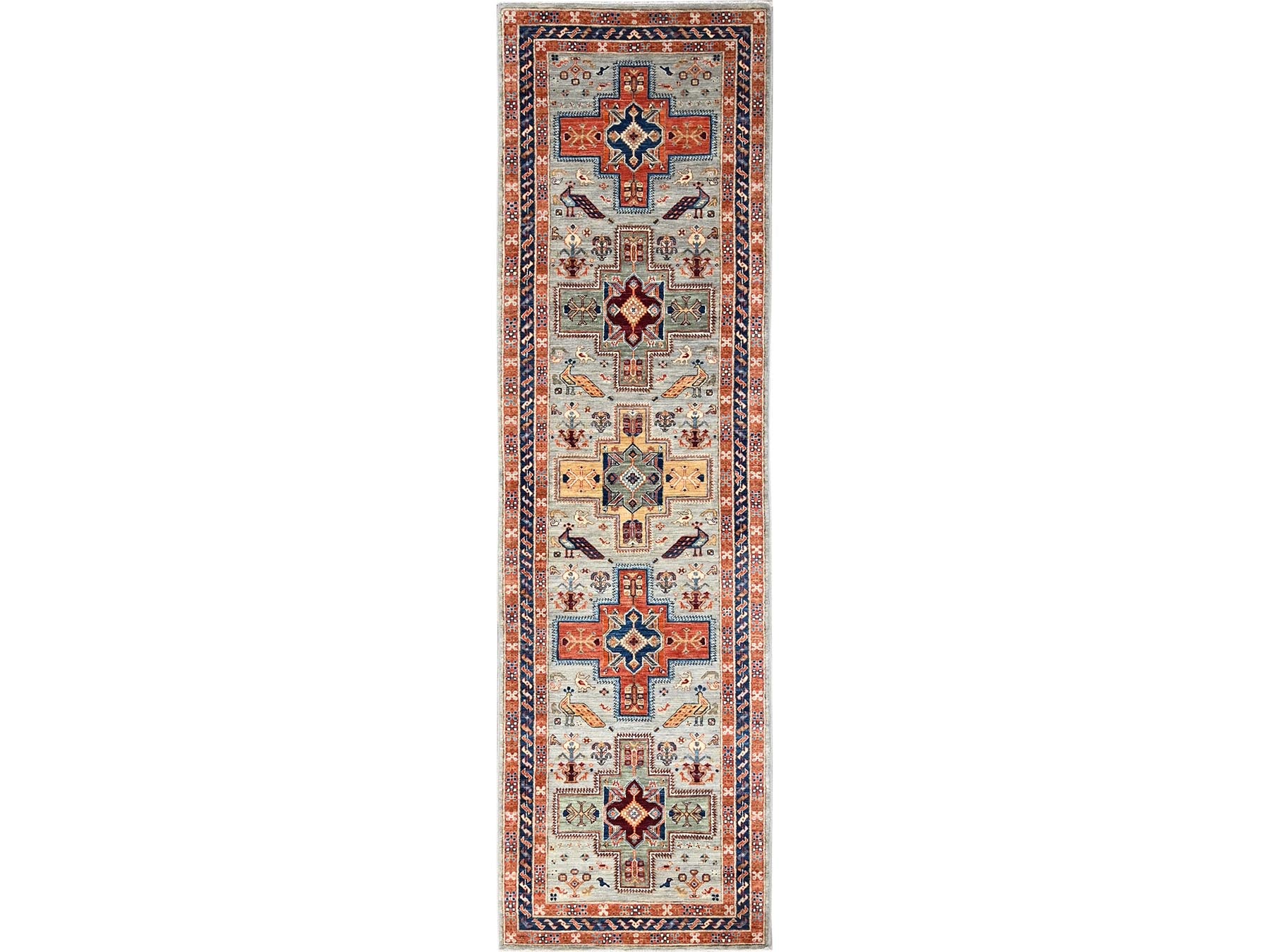 2'8" x 9'7" New Hand Knotted Grey Wool Runner Oriental Rug - MOA1021150