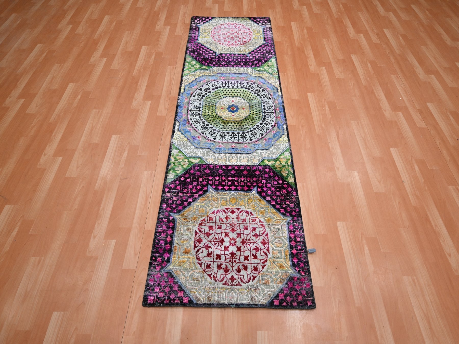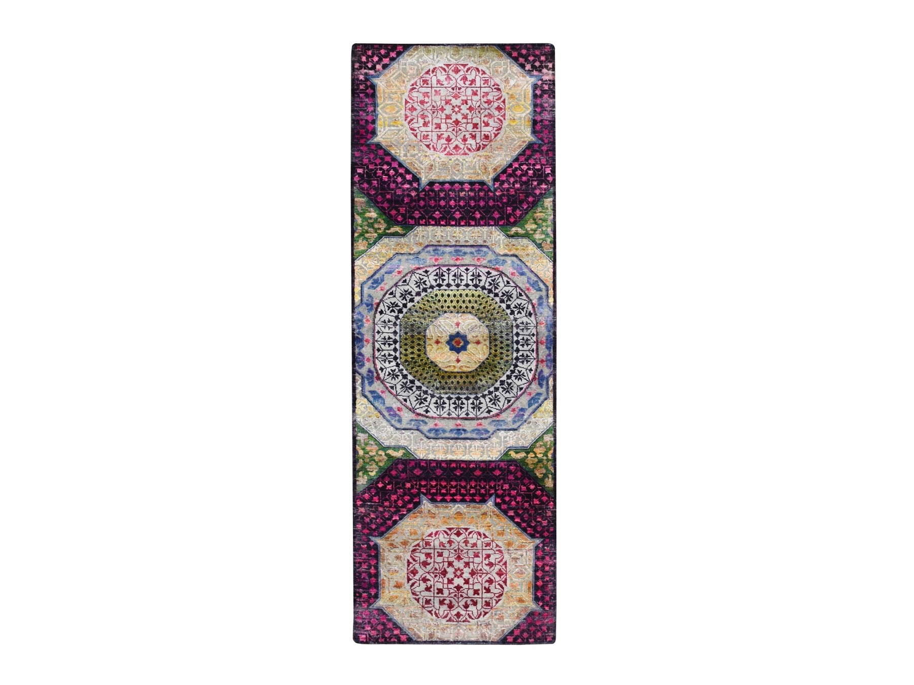 2'9" x 8'1" New Hand Knotted Red Wool & Silk Runner Oriental Rug - MOA10275555
