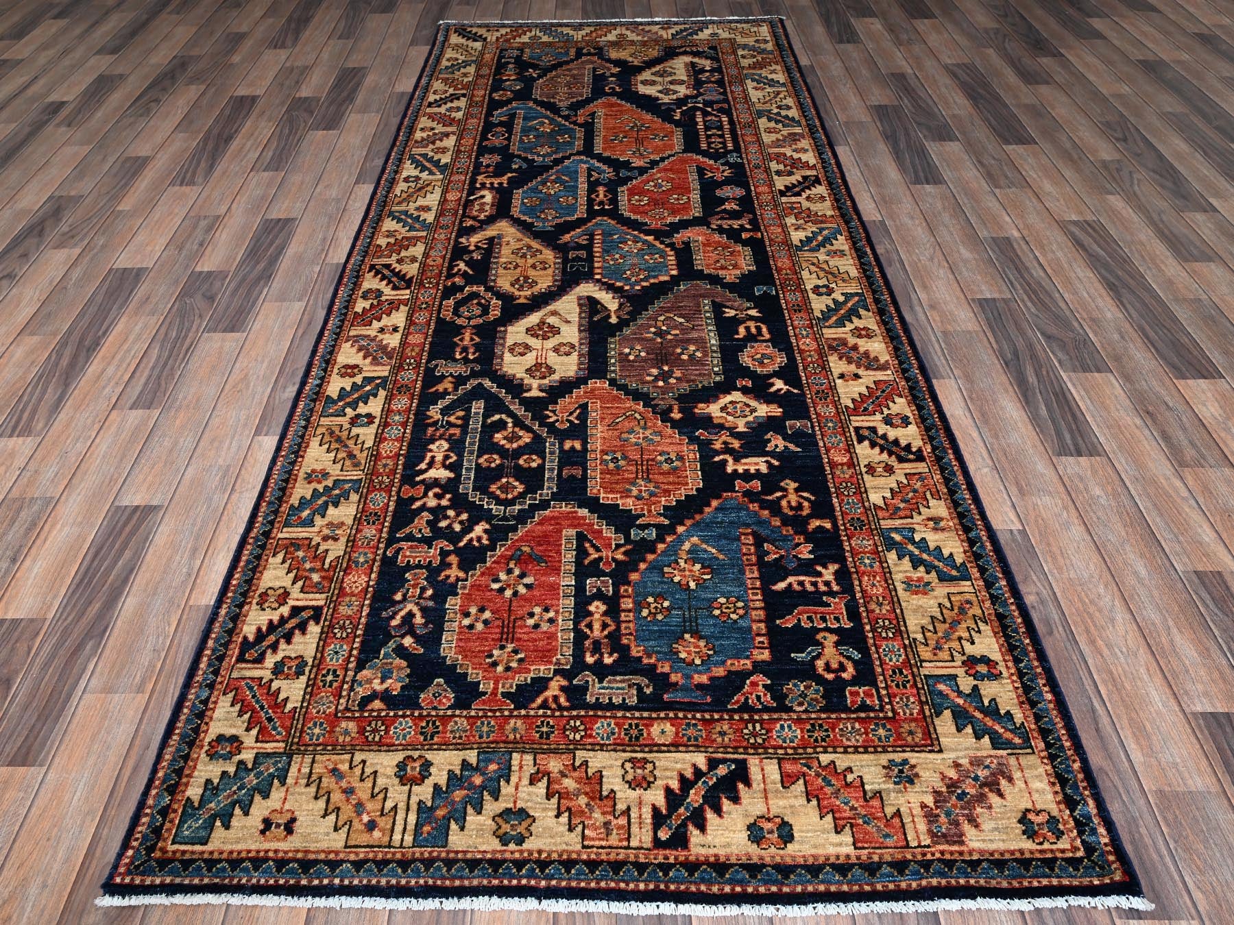 3'11" x 9'9" New Hand Knotted Blue Wool Runner Oriental Rug - MOA1021065