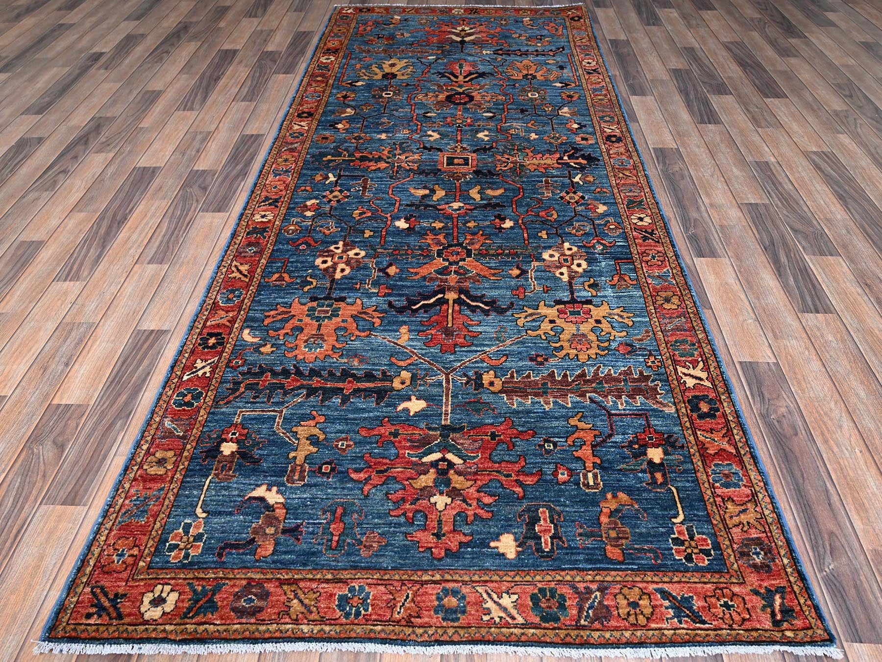 4'1" x 9'10" New Hand Knotted Blue Wool Runner Oriental Rug - MOA1021135