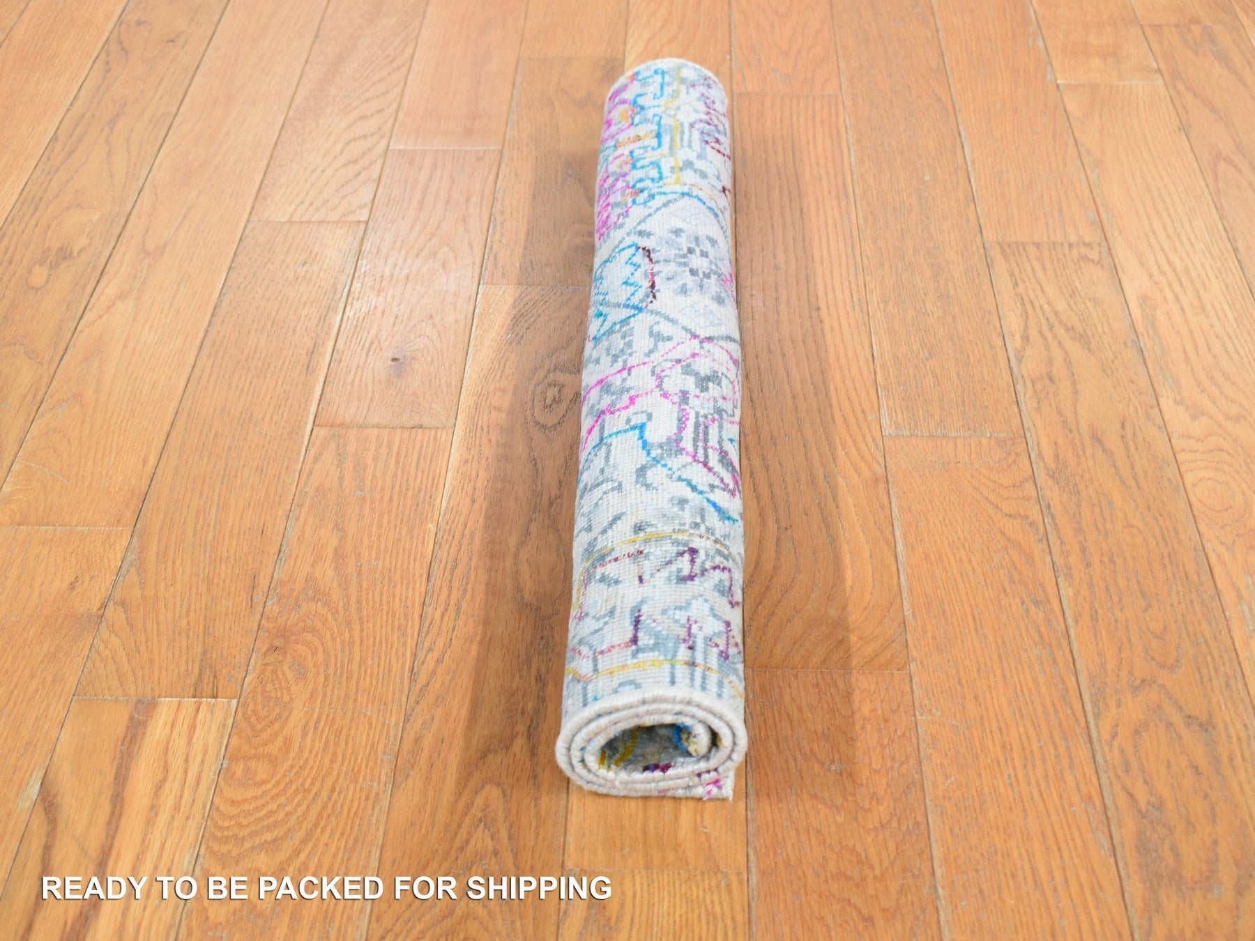 2'0" x 2'0" New Hand Knotted Ivory Wool & Silk Square Oriental Rug - MOA10287991