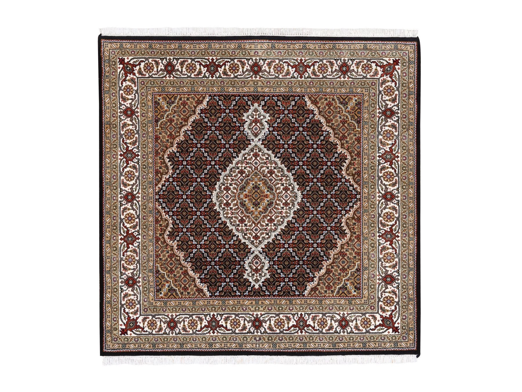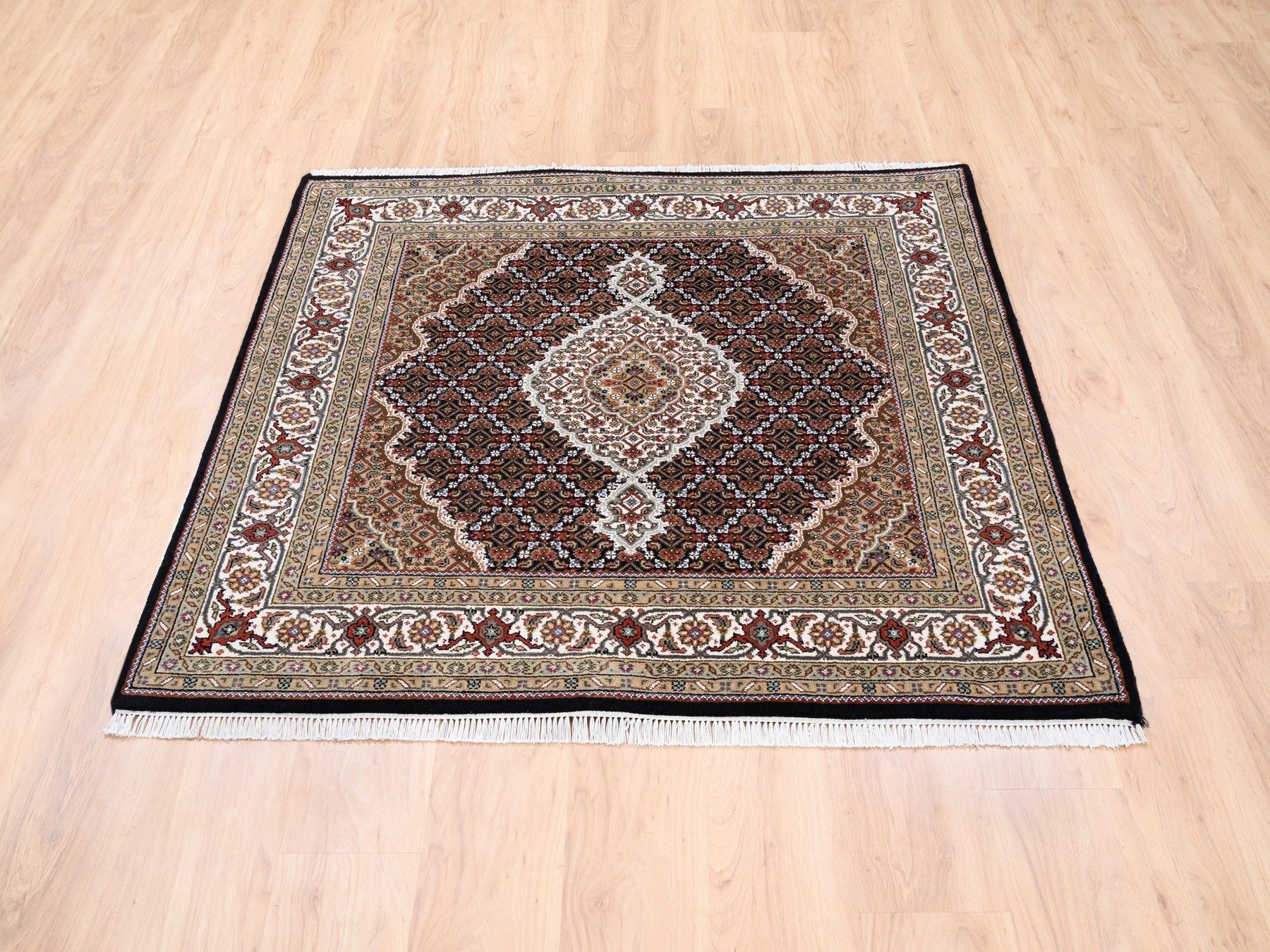 5'0" x 5'0" New Hand Knotted Black Wool Square Oriental Rug - MOA10262543
