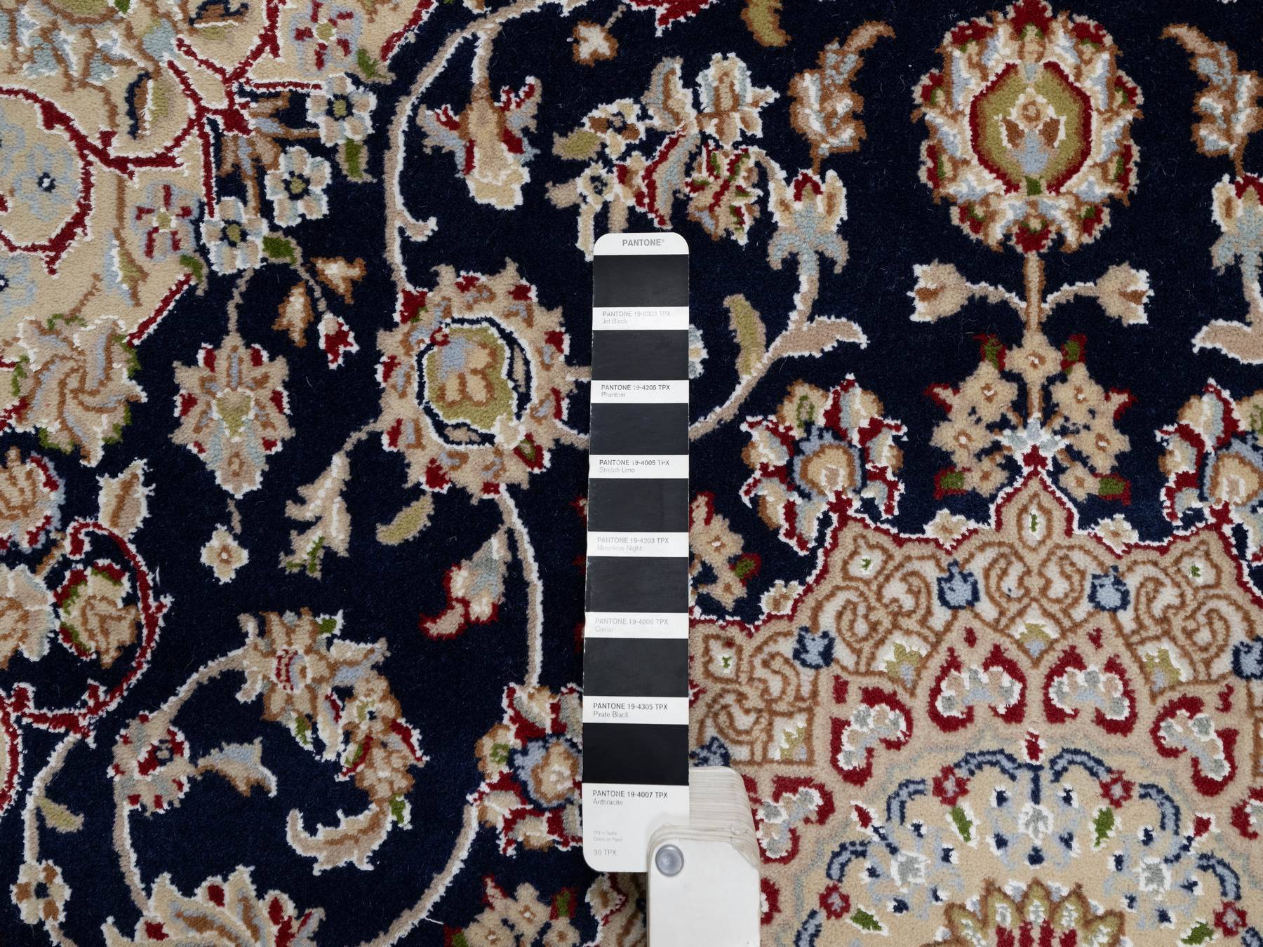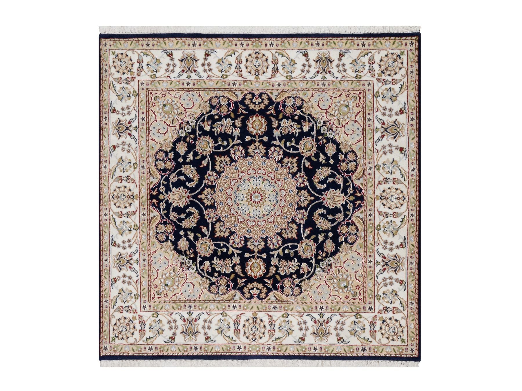 5'0" x 5'0" New Hand Knotted Blue Wool & Silk Square Oriental Rug - MOA10291054