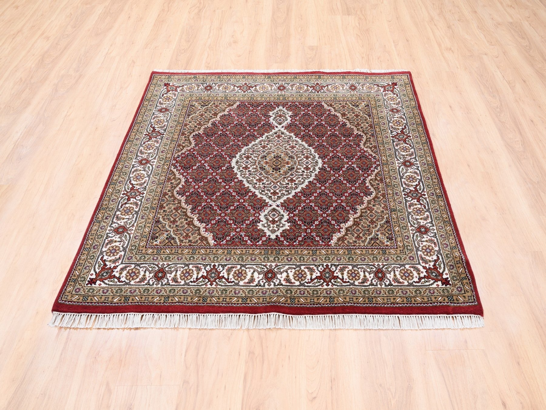 5'0" x 5'0" New Hand Knotted Red Wool Square Oriental Rug - MOA10262553