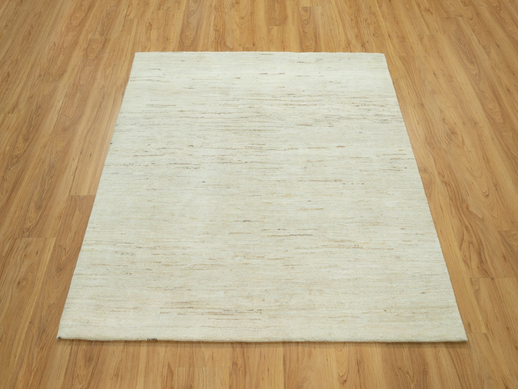 5'0" x 5'1" New Hand Knotted Ivory Wool Square Oriental Rug - MOA10290551