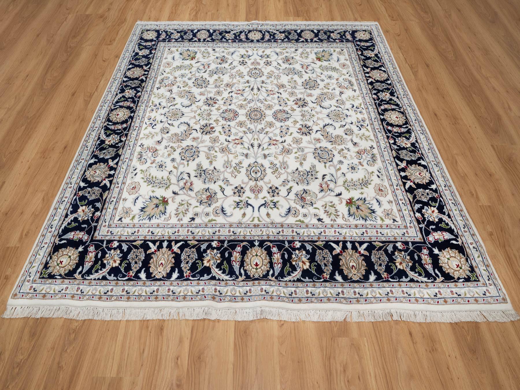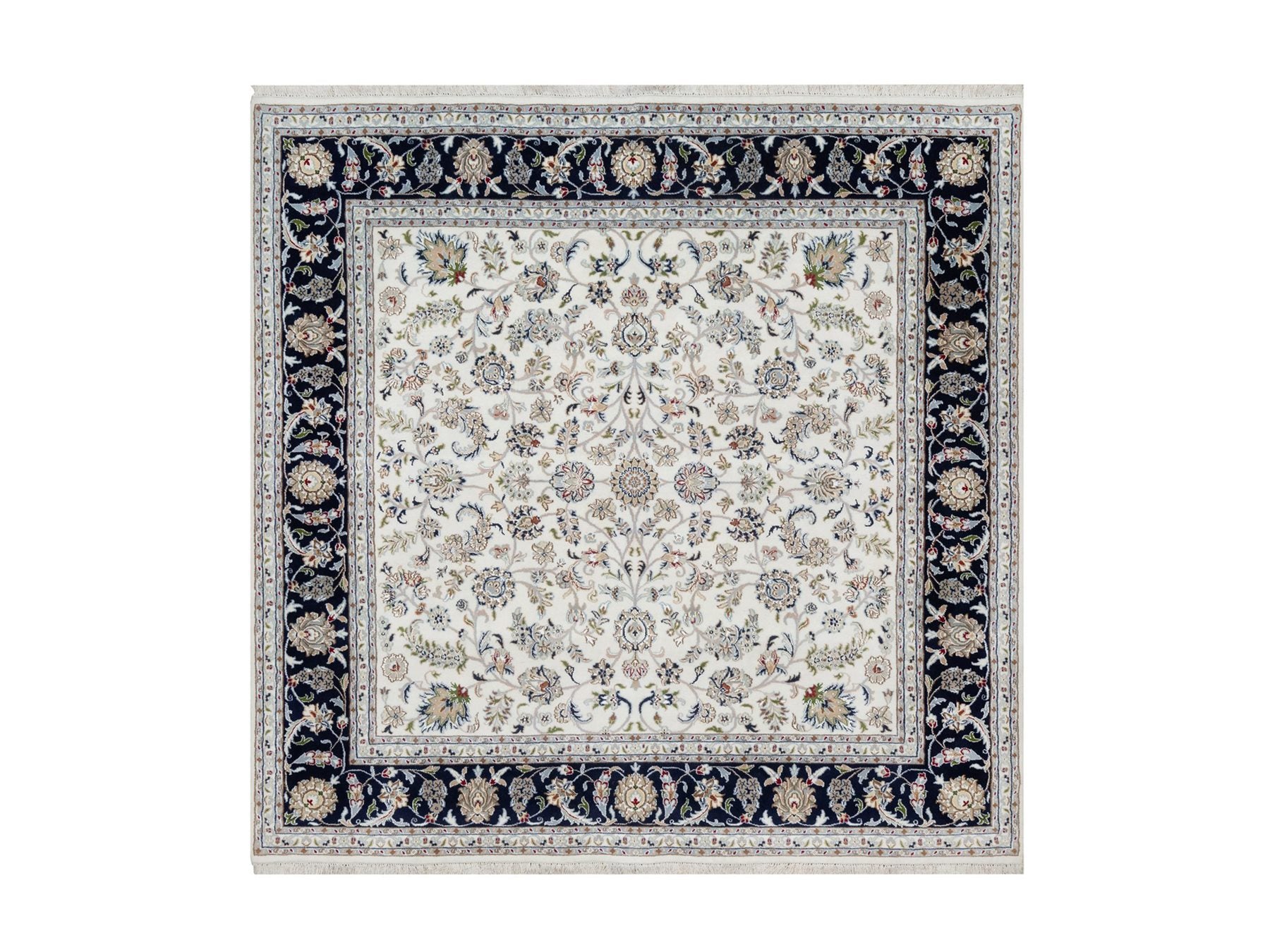 7'8" x 7'9" New Hand Knotted Ivory Wool & Silk Square Oriental Rug - MOA10291058
