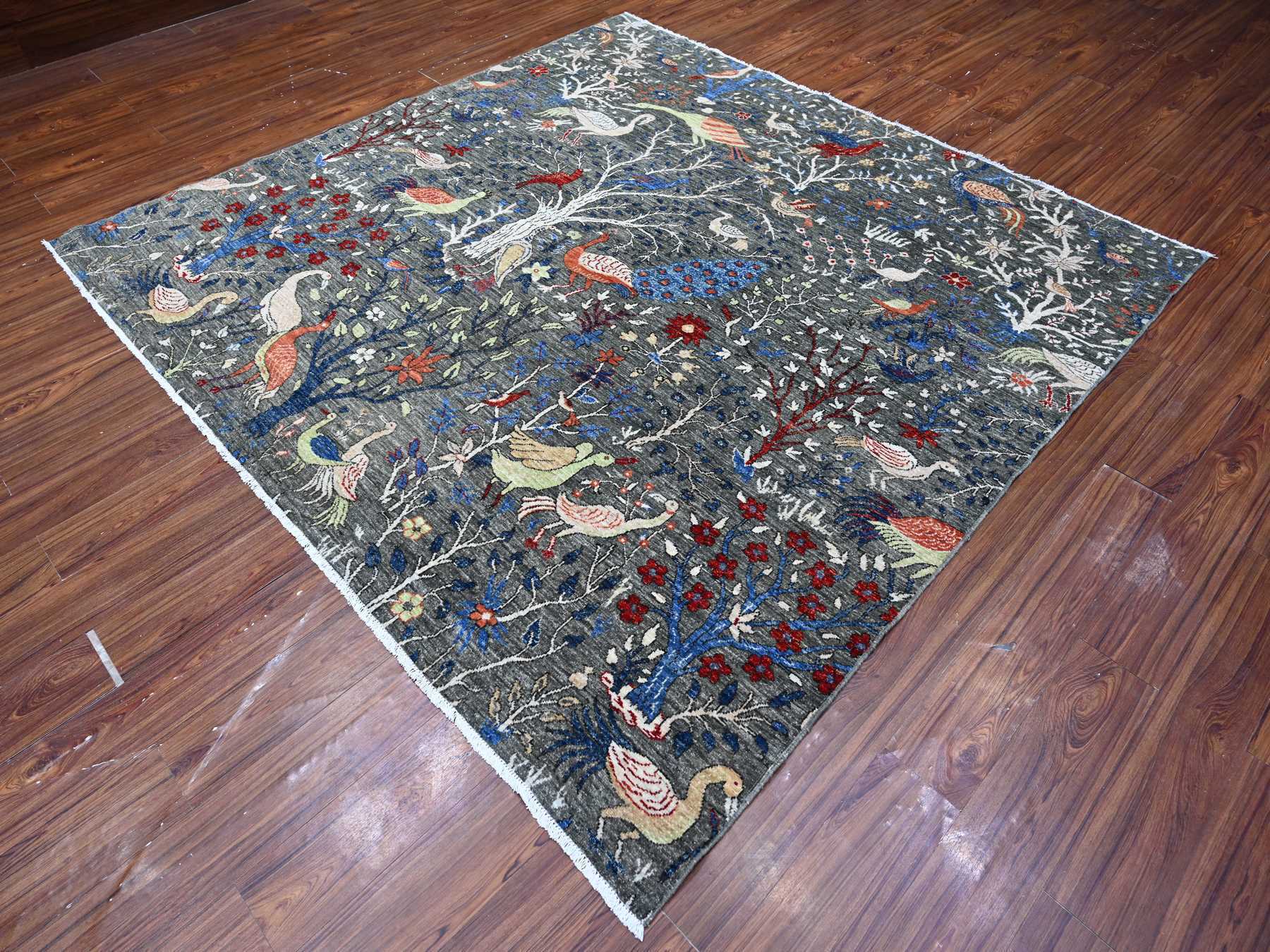 7'9" x 8'0" New Hand Knotted Grey Wool Square Oriental Rug - MOA10288867