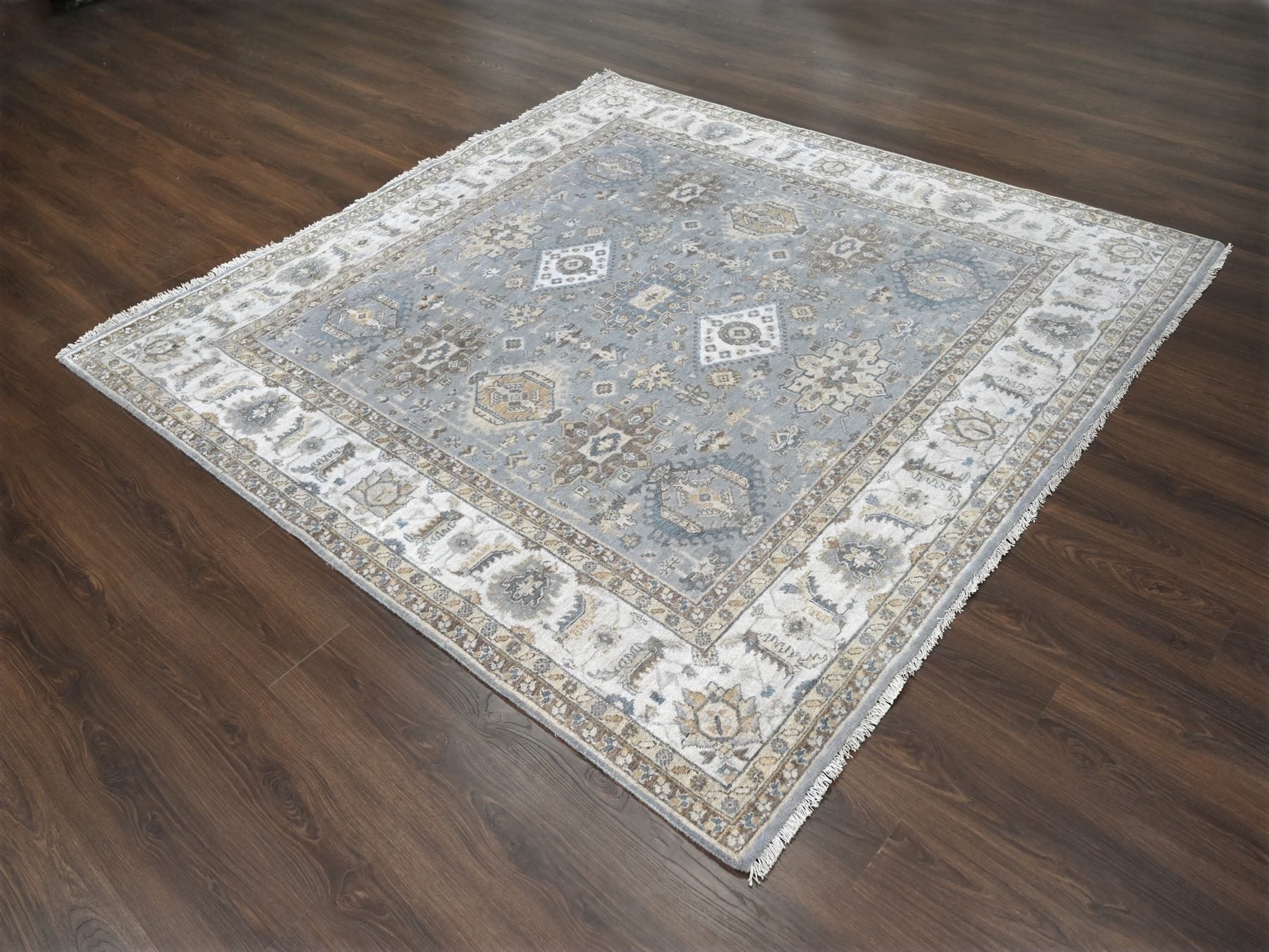 8'0" x 8'0" New Hand Knotted Grey Wool Square Oriental Rug - MOA10284205