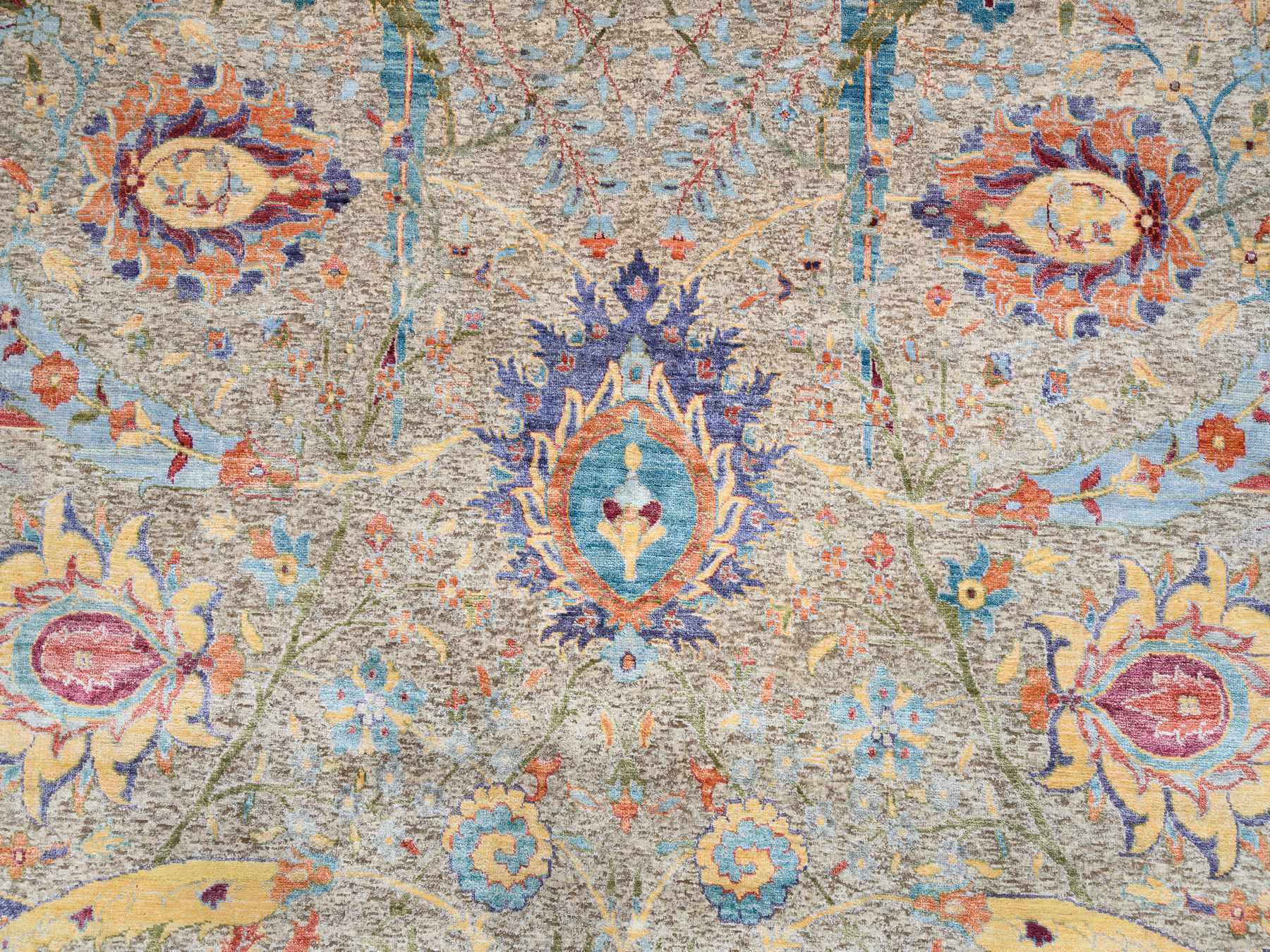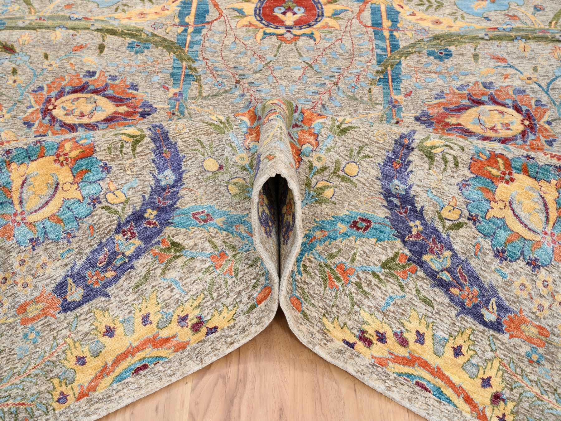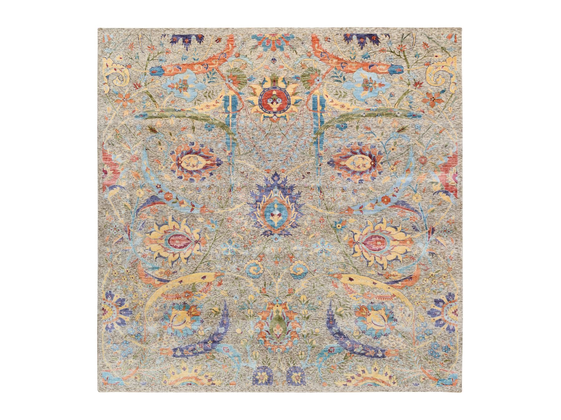 8'0" x 8'0" New Hand Knotted Ivory Wool & Silk Square Oriental Rug - MOA10263683