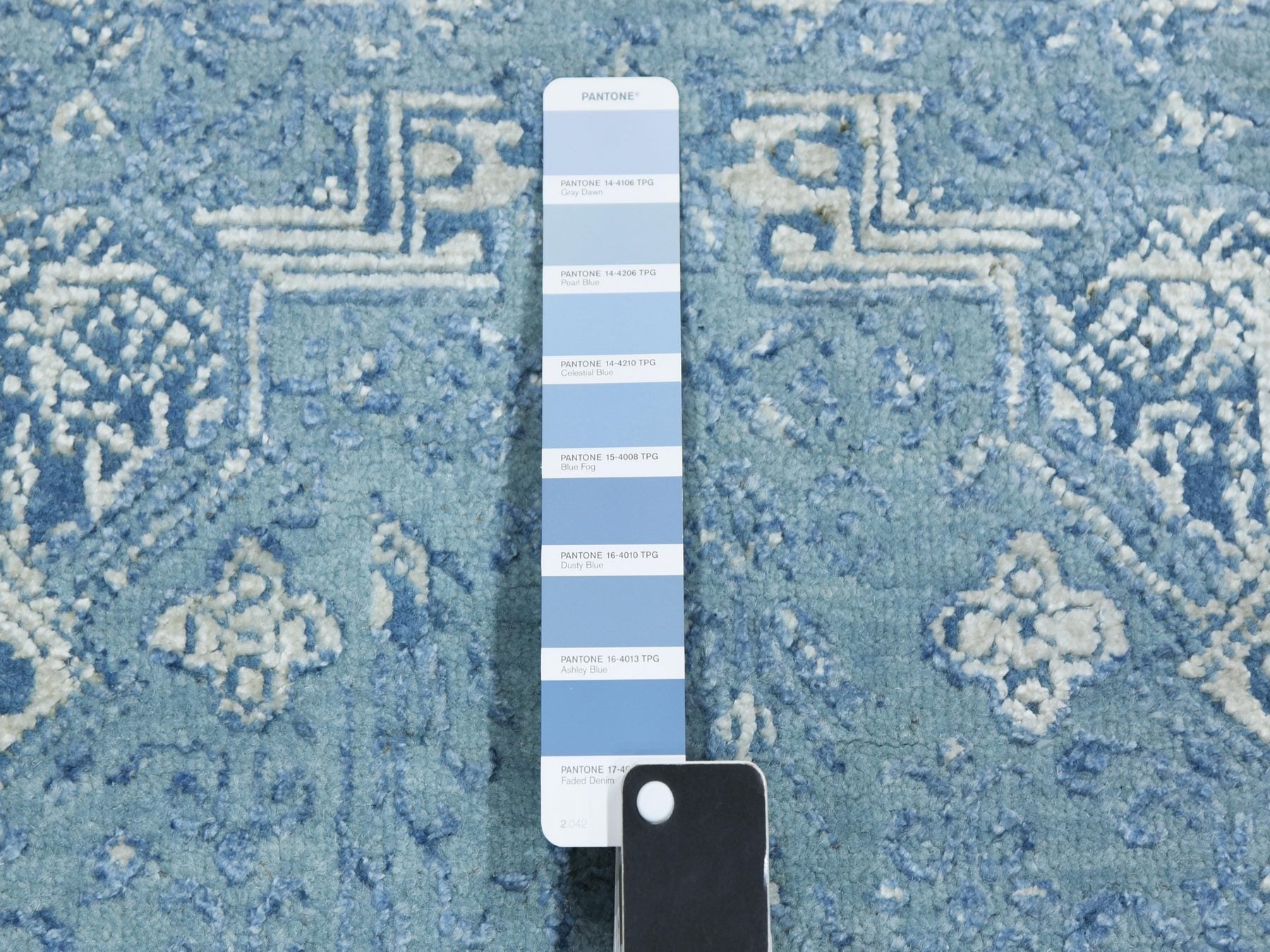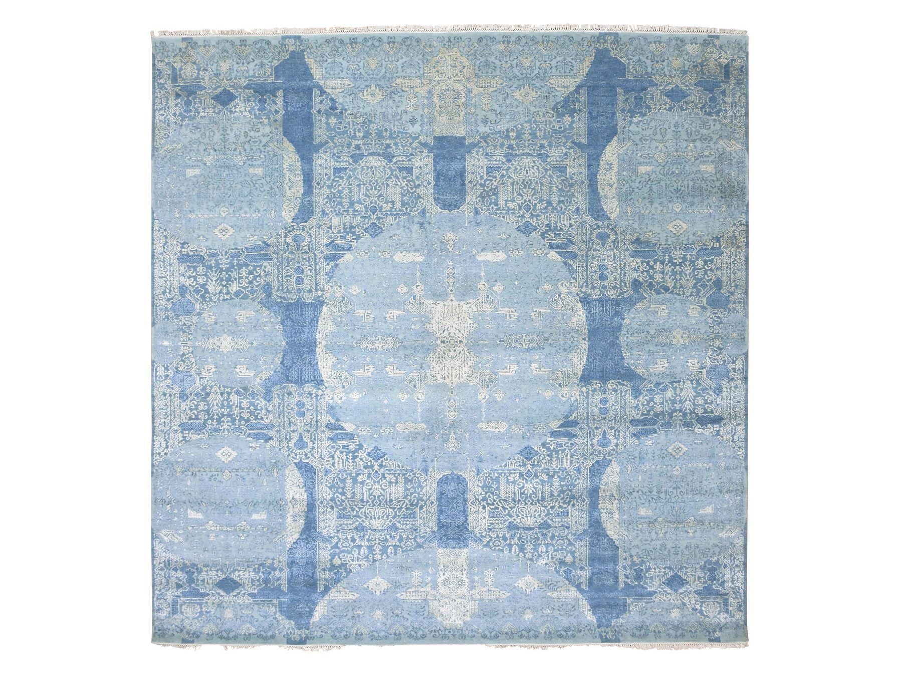 10'0" x 10'2" New Hand Knotted Blue Wool & Pure Silk Square Oriental Rug - MOA10275291