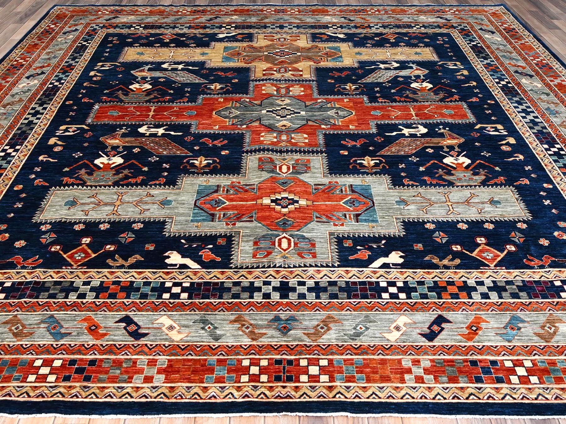 11'5" x 11'9" New Hand Knotted Blue Wool Square Oriental Rug - MOA10286409