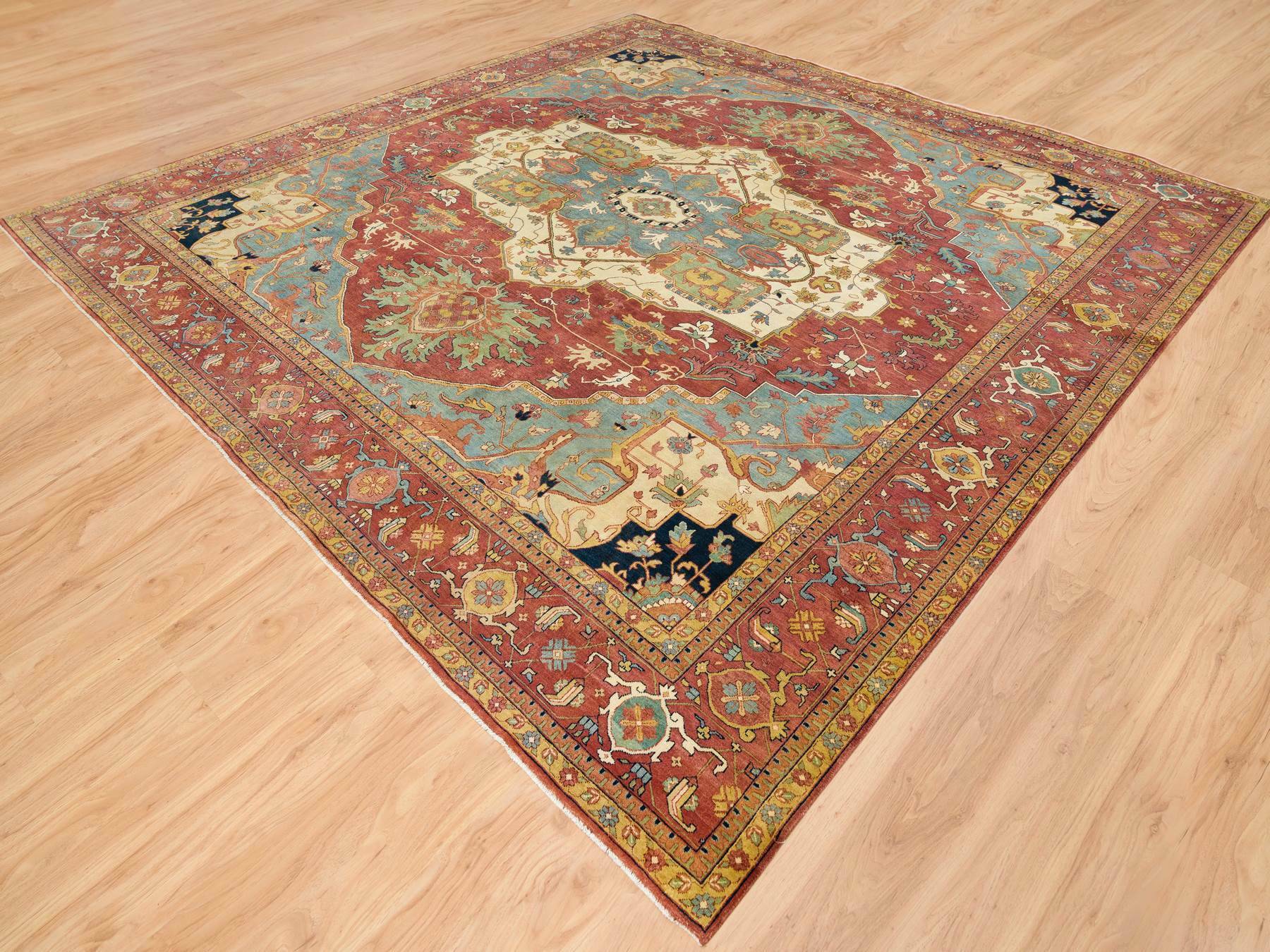12'1" x 12'2" New Hand Knotted Red Wool Square Oriental Rug - MOA10265510