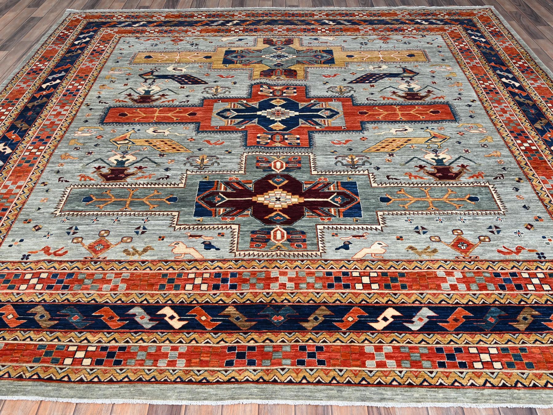 9'9" x 9'10" New Hand Knotted Grey Wool Square Oriental Rug - MOA10286416