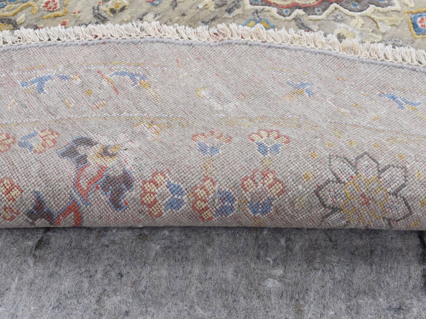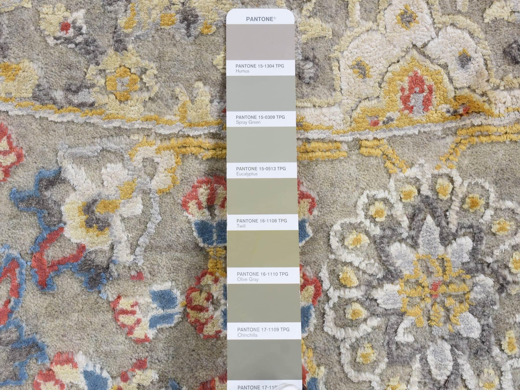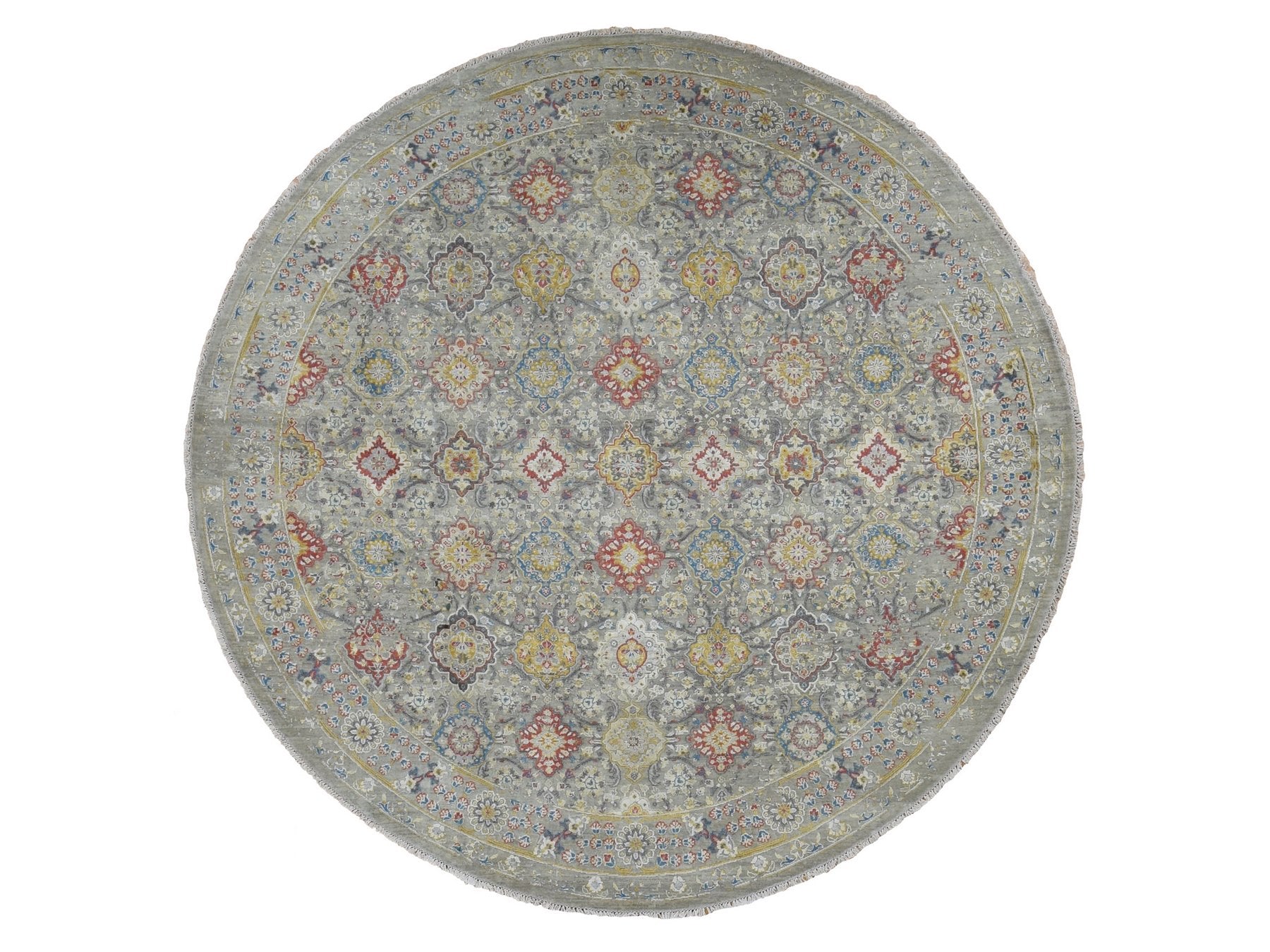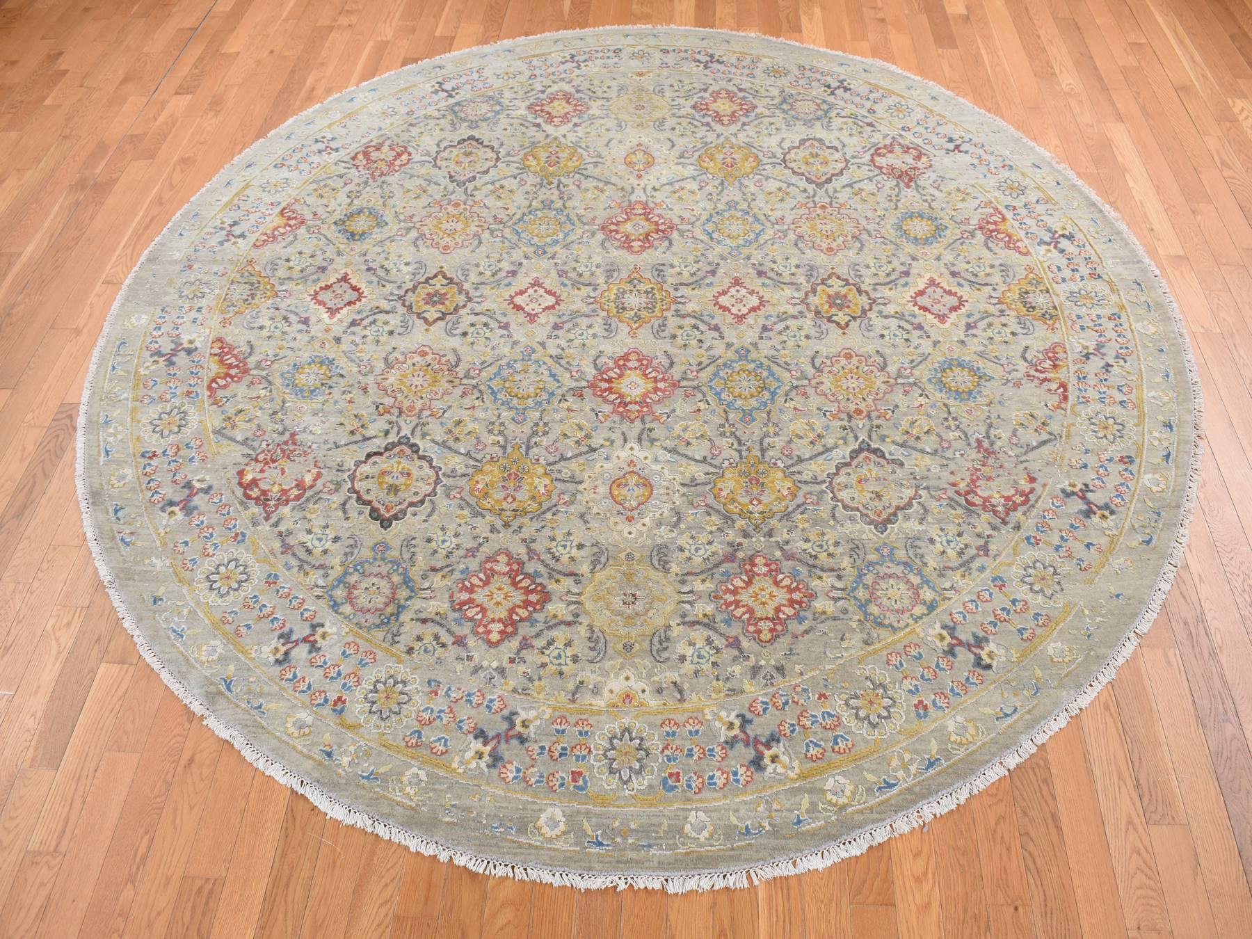 10'0" x 10'0" New Hand Knotted Beige Wool & Silk Round Oriental Rug - MOA10287750