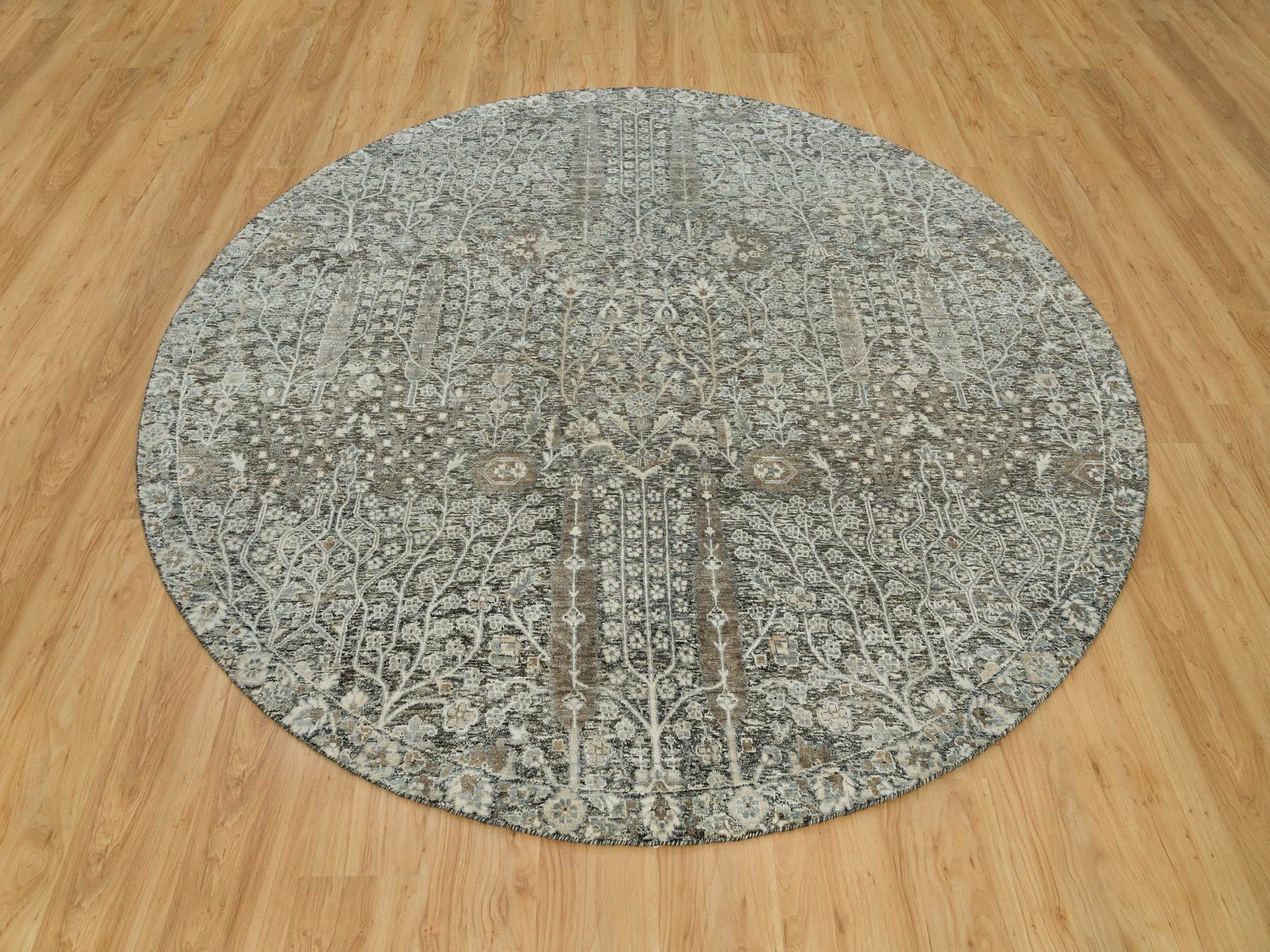 7'11" x 7'11" New Hand Knotted Brown Wool & Silk Round Oriental Rug - MOA10290246