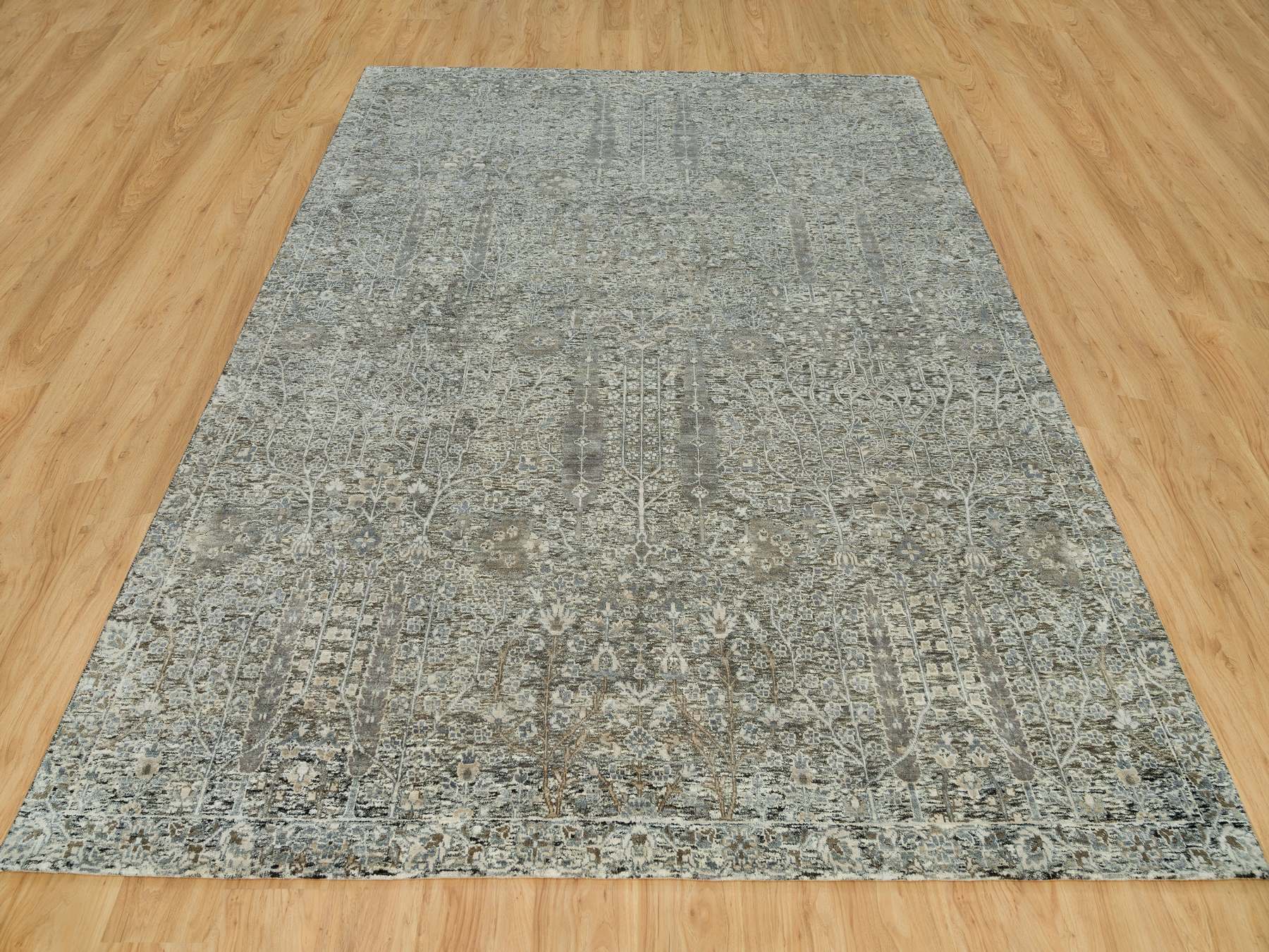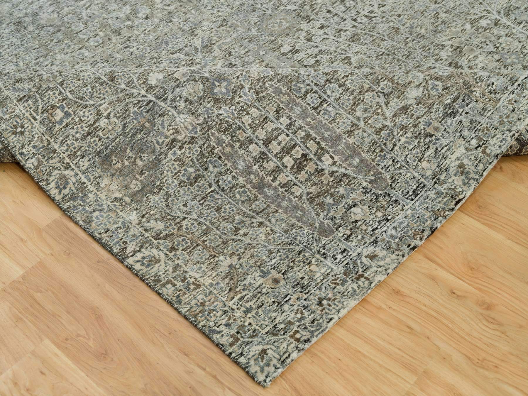 8'1" x 10'1" New Hand Knotted Brown Wool & Silk Rectangle Oriental Rug - MOA10290219