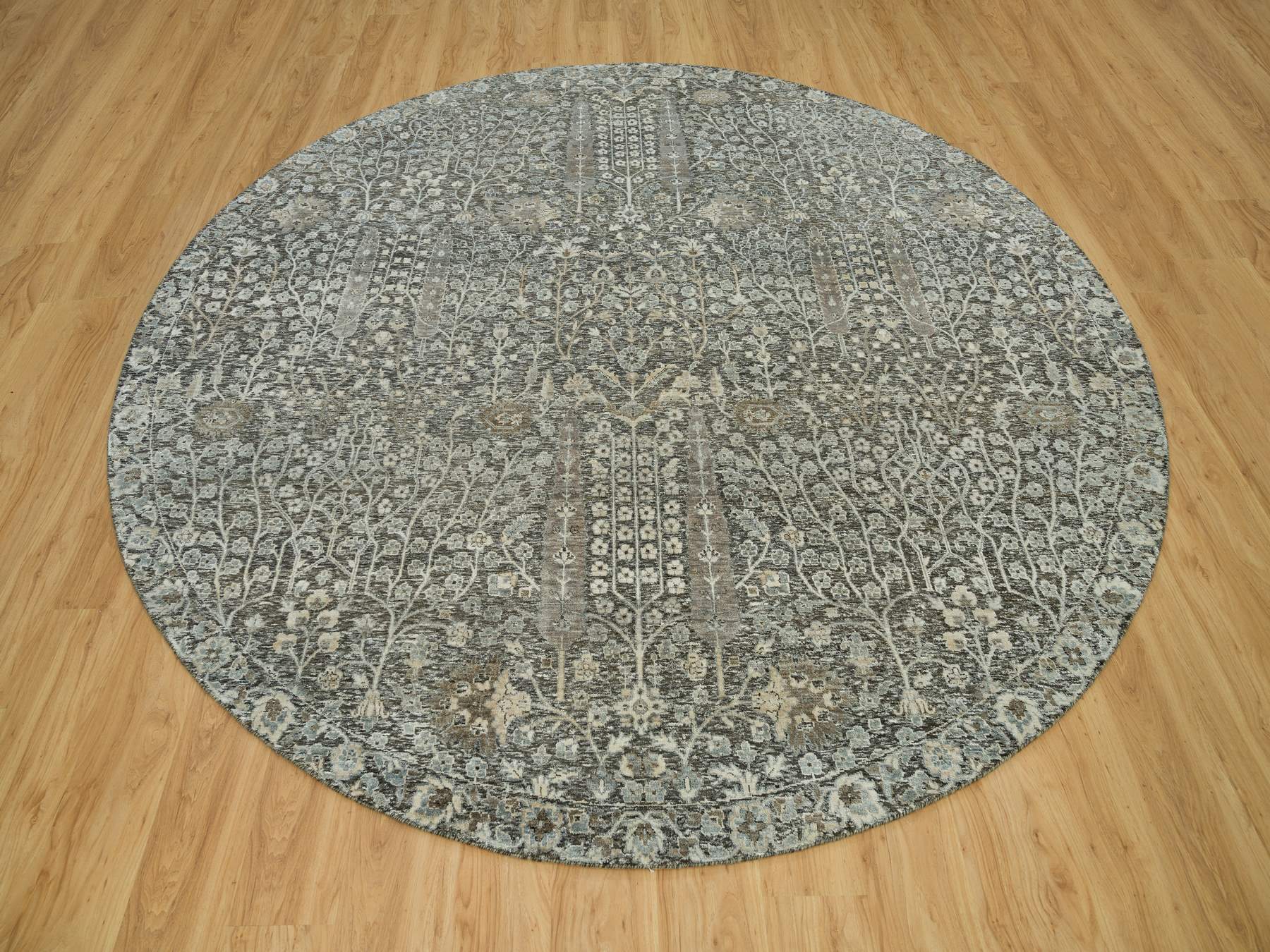 9'10" x 9'10" New Hand Knotted Brown Wool & Silk Round Oriental Rug - MOA10290247
